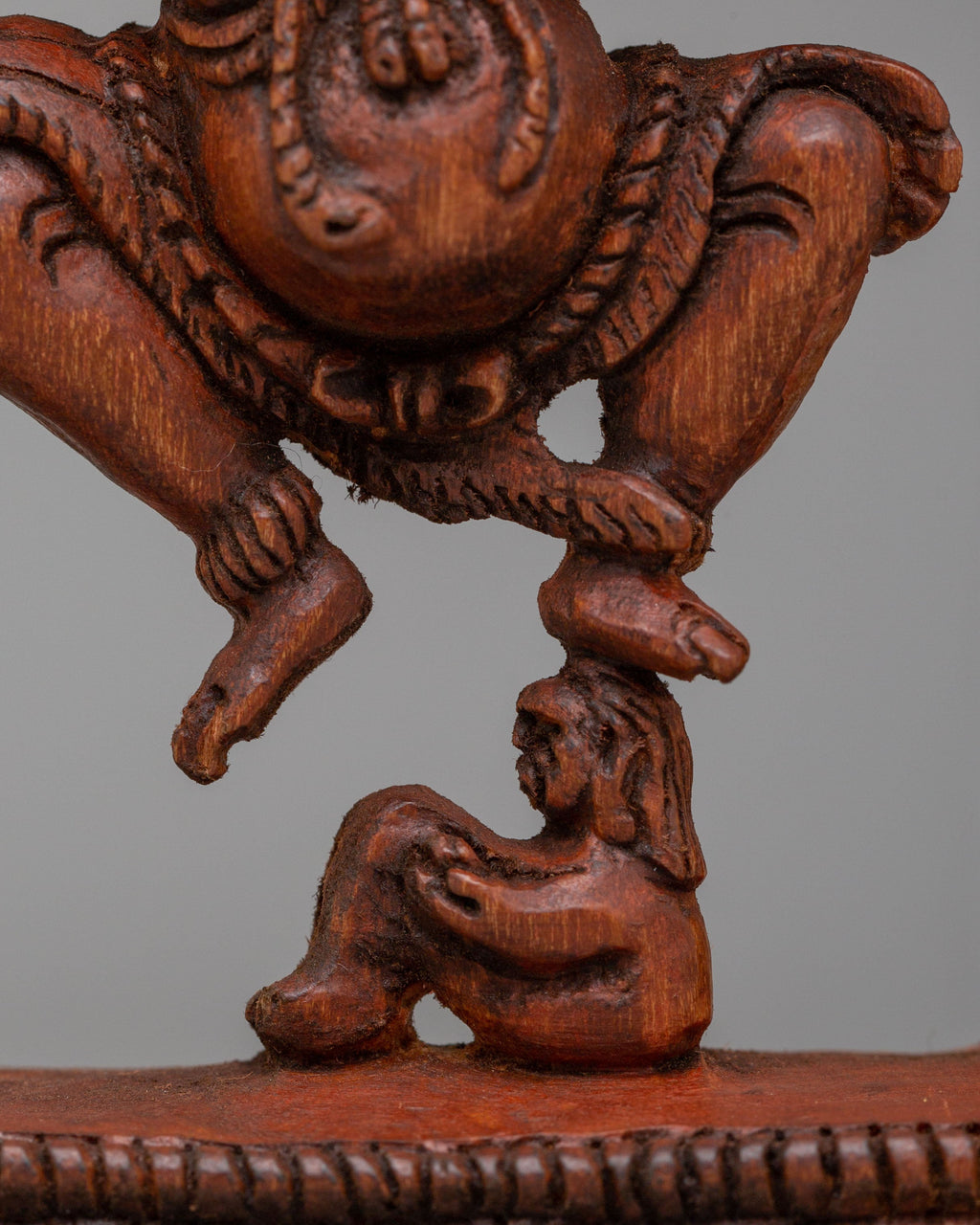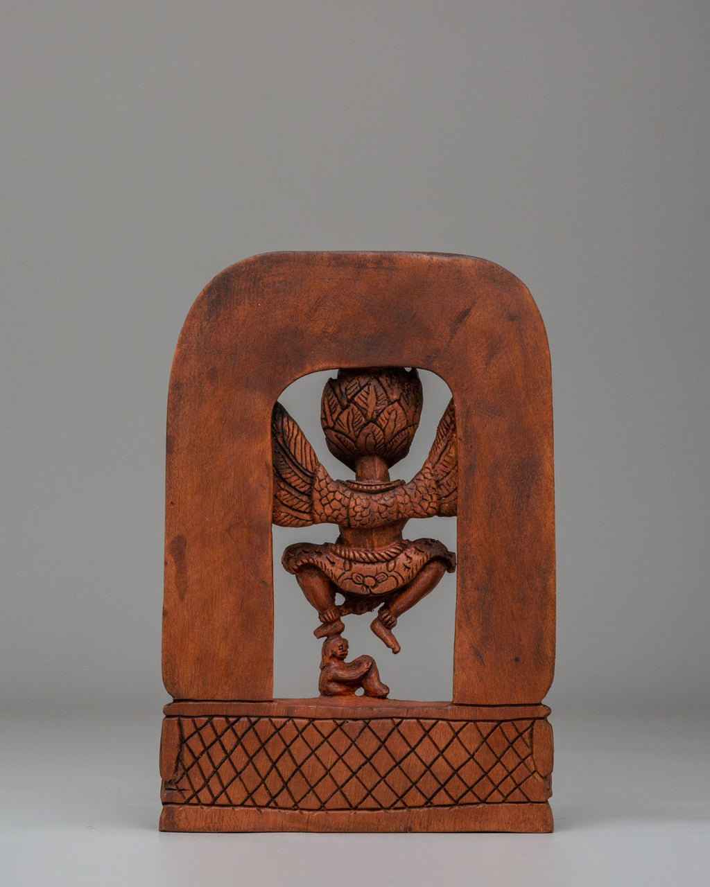 This hand-carved wooden Garuda statue transcends mere decoration—it's a powerful spiritual companion for your sacred space. Each intricate detail reflects masterful craftsmanship, capturing the majestic essence of this revered protector deity from Buddhist tradition. Beyond its stunning visual appeal, this figurine serves as a tangible connection to divine strength and courage, inviting blessings of protection into your home or temple. Whether displayed in a meditation corner, personal shrine, or alongside other sacred artifacts, this statue becomes a focal point for spiritual practice and contemplation. Its thoughtfully proportioned size makes it versatile enough for any altar while commanding presence through its detailed artistry. More than decoration, it functions as a daily reminder of the virtues Garuda embodies—unwavering courage, profound wisdom, and access to divine guidance on your path toward enlightenment. Perfect for practitioners seeking to deepen their spiritual environment or collectors of authentic sacred art, this handcrafted piece infuses your space with intention and reverence. Let this guardian deity inspire your journey toward inner transformation and spiritual awakening.