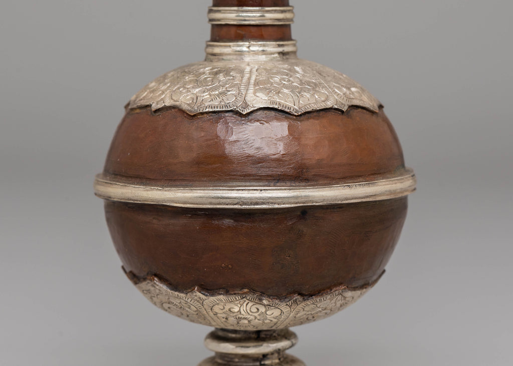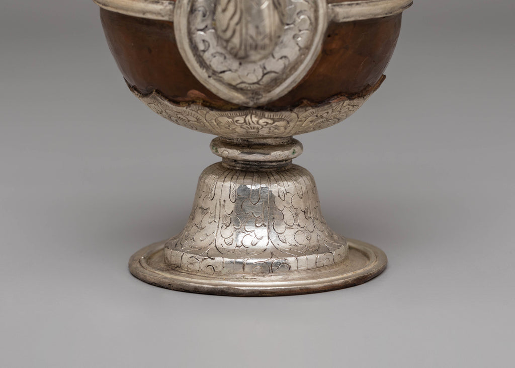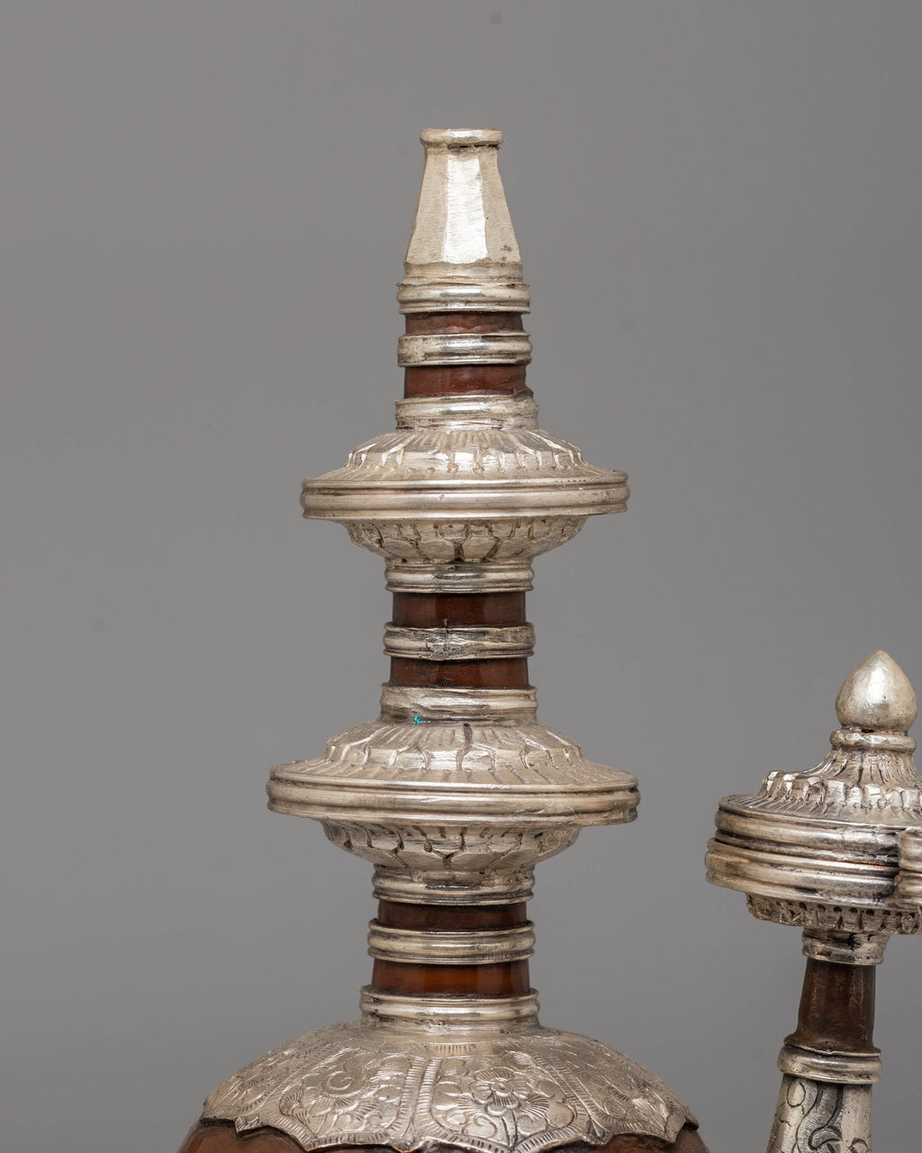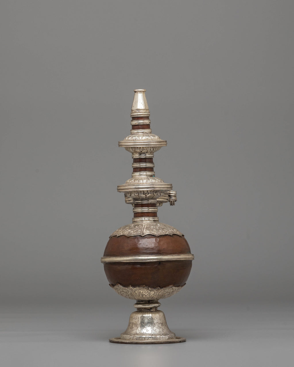 Traditionally, such ceremonial tea pots are used in Tibetan Buddhist ceremonies to offer tea to deities and guests. The intricate designs and symbolic motifs on the teapot hold deep spiritual meaning, representing prosperity, protection, and harmony. With its elegant shape and delicate craftsmanship, this teapot not only enhances the aesthetic of any space but also carries profound spiritual significance, making it a meaningful addition to any collection or altar.