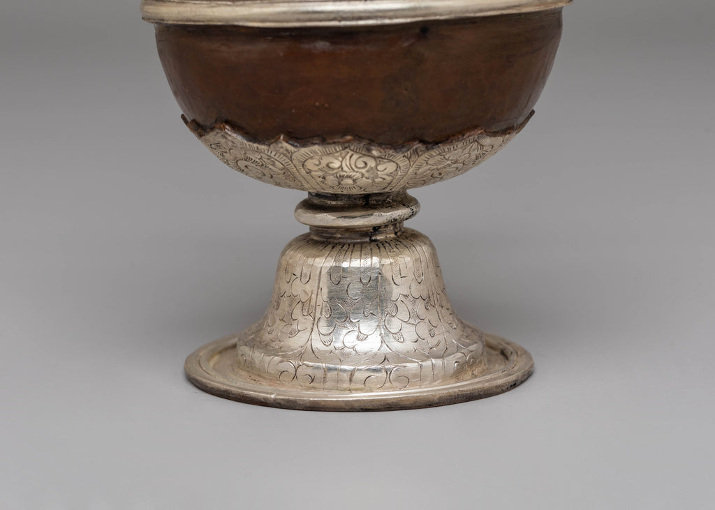 This handcrafted Buddhist tea pot art features an oxidized copper body and electro-silver plating, showcasing the skilled craftsmanship of Himalayan artisans. The design includes a beautifully crafted dragon handle and a spout shaped like a mythical bird, adding elegance and spiritual symbolism. This teapot serves as both a functional vessel for offering tea during rituals and a decorative piece embodying the rich cultural heritage of Buddhism.
