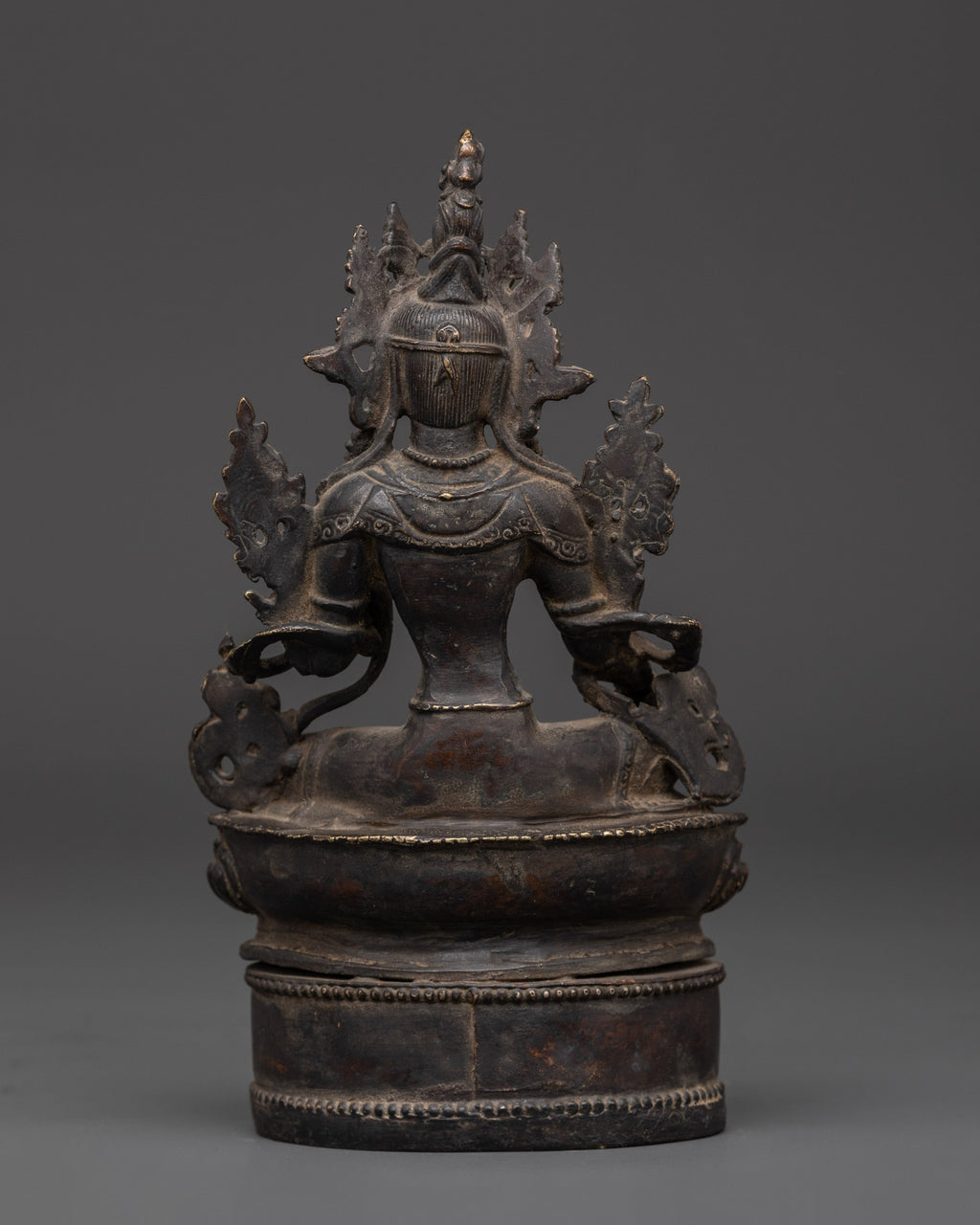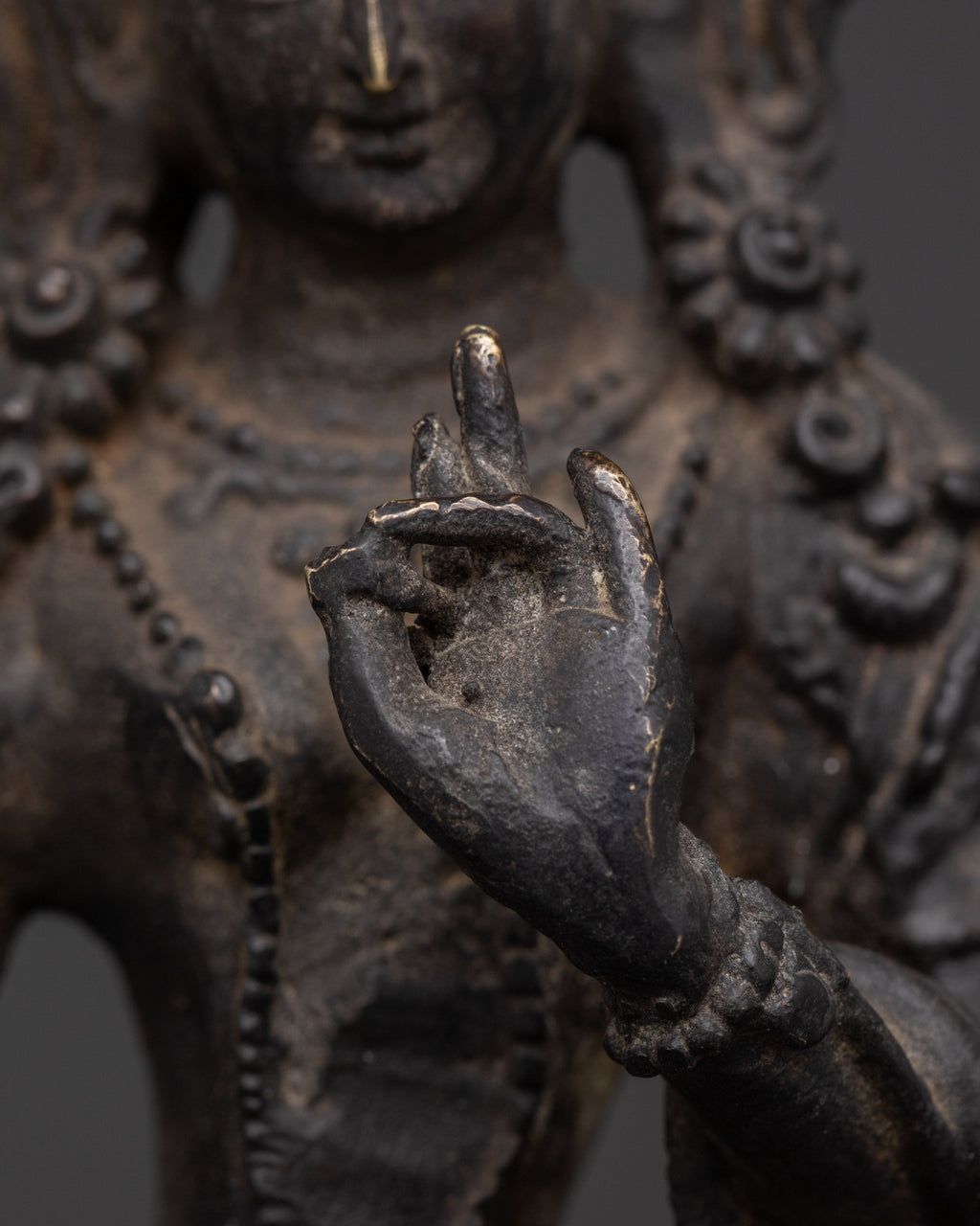 The compassionate green Tara figurine represents spiritual protection and compassion. This Buddhist Syamatara Statue brings calm and compassionate energy to spiritual settings. Crafted with care, it represents enlightenment and gives a peaceful refuge for meditation and reflection, making it an excellent addition to holy spaces seeking spiritual upliftment and calm.