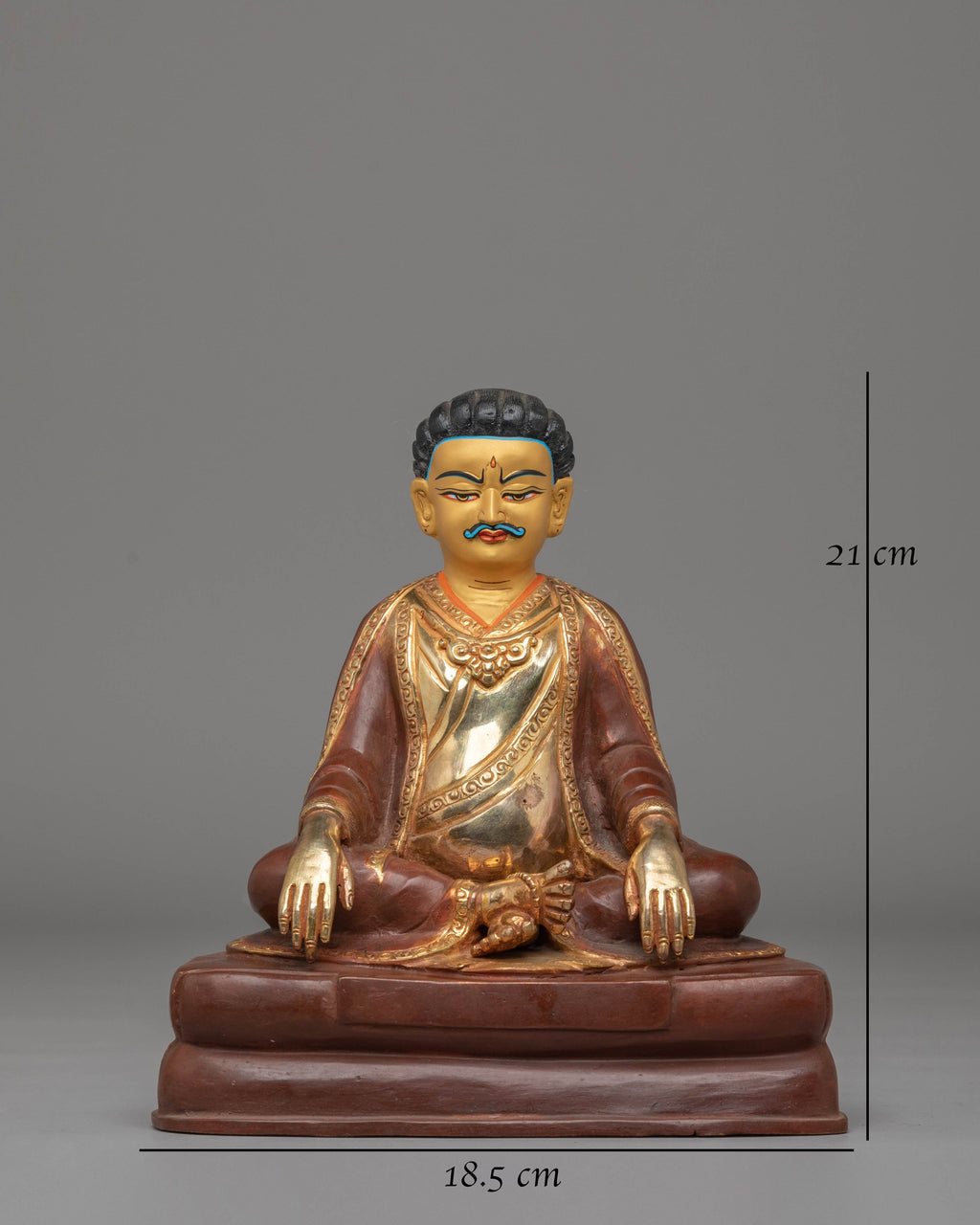 The Handcrafted Gampopa Buddhist Statue is a beautiful representation of Gampopa, one of the most revered figures in Tibetan Buddhism and a central teacher of the Kagyu lineage. Standing at 21cm tall and weighing 2.03kg, this statue features a copper body, 24K gold plating, and vibrant acrylic colors. Gampopa’s teachings blended the study of Buddhist scriptures with the practice of meditation, making this statue a powerful symbol of wisdom, devotion, and the path to enlightenment. It serves as an ideal addition to any altar, meditation space, or sacred collection.