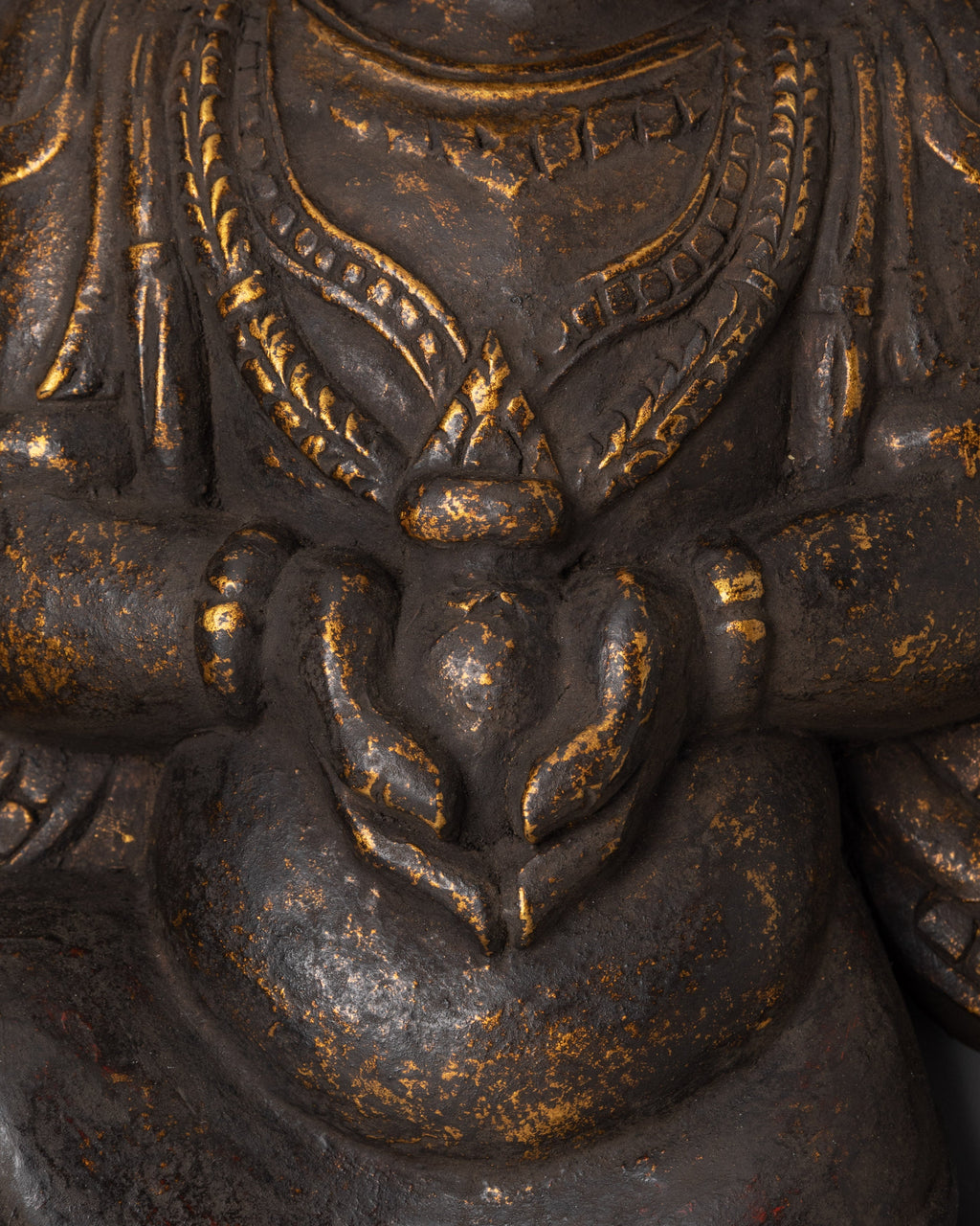 Every aspect of this guardian figure carries significant cultural and spiritual symbolism. Guardians are usually placed in temples, shrines, and houses to protect practitioners and maintain sacred energy. The elaborate decorations highlight divine presence and attentiveness, while the posture symbolizes steadfast strength. Displaying this image in your house, altar, or meditation area promotes spiritual protection, inner resilience, and increases the energy of your sacred space.