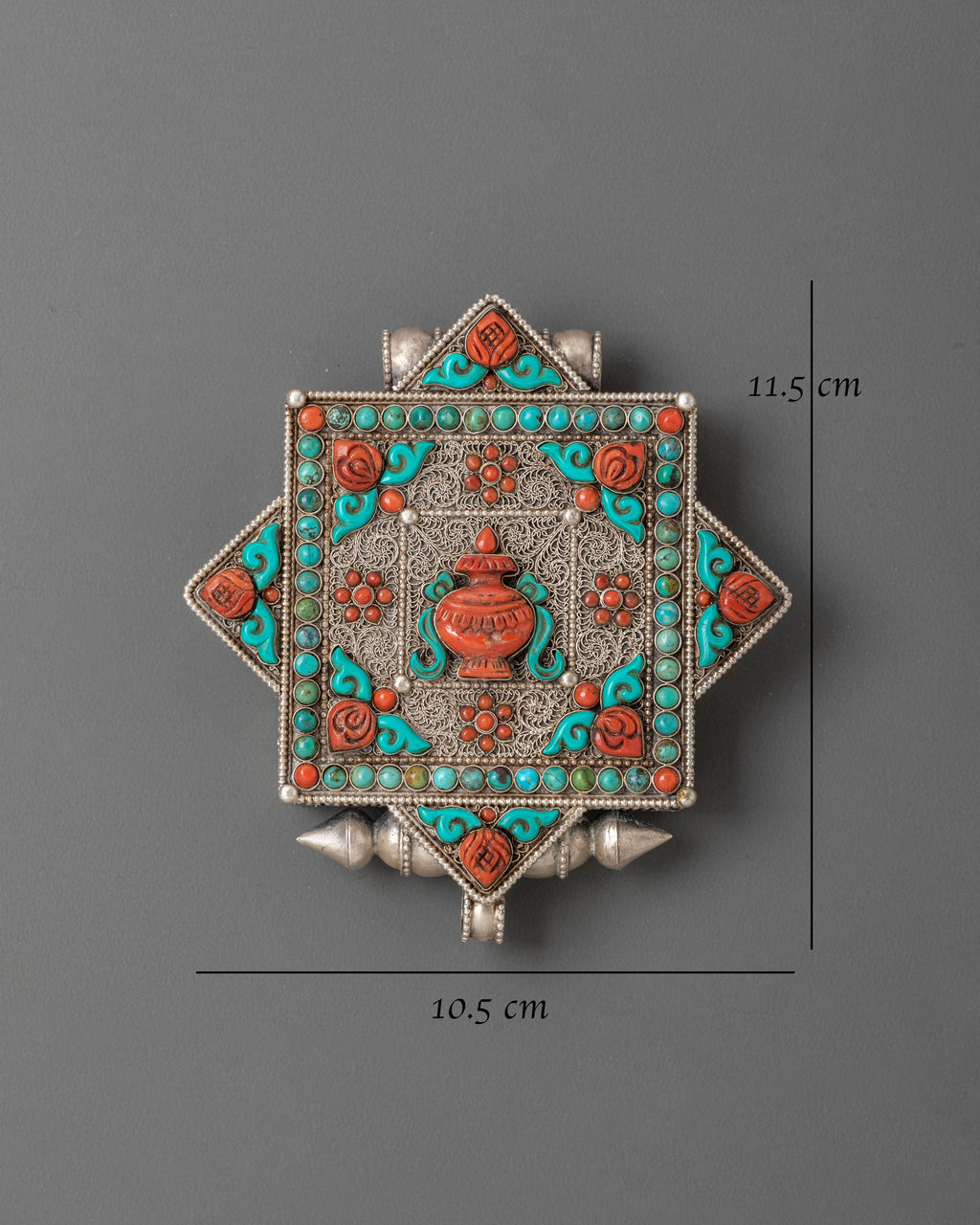 Unique Handcrafted Ghau Box Locket | Spiritual Silver Pendant with Coral & Turquoise Stones