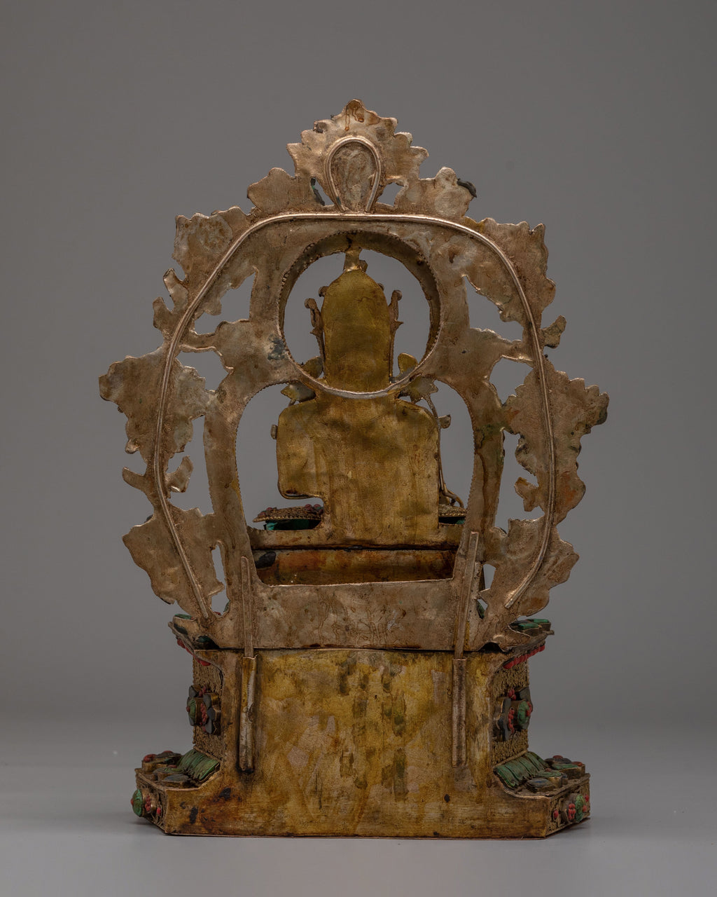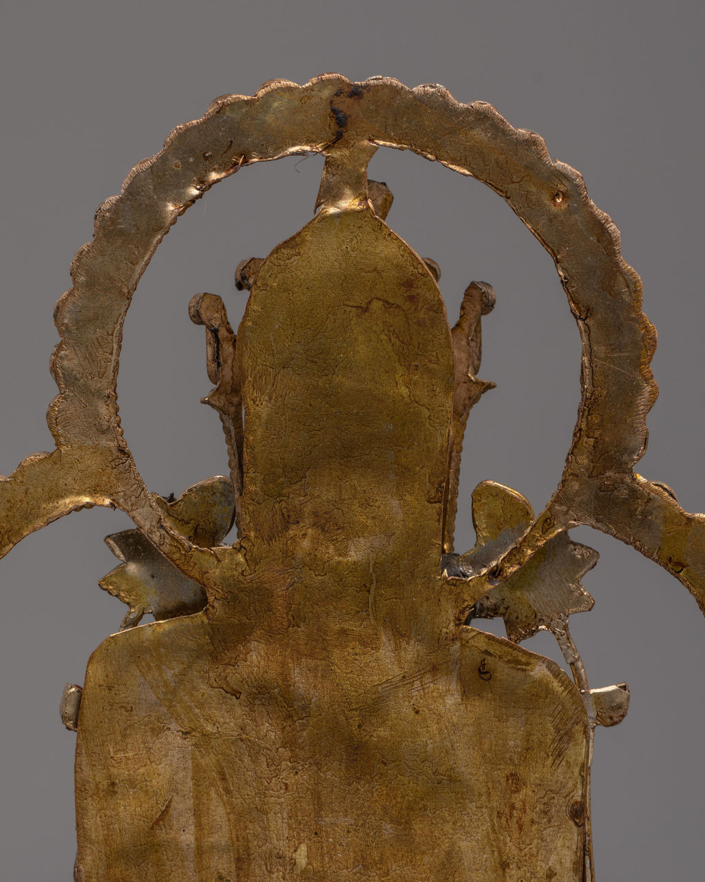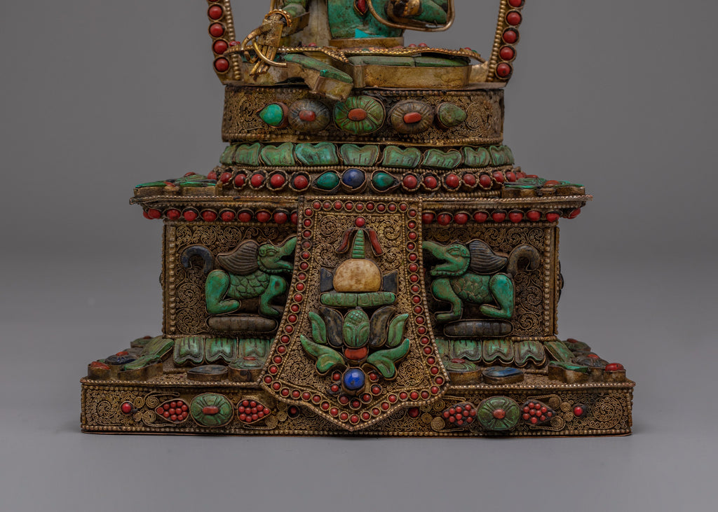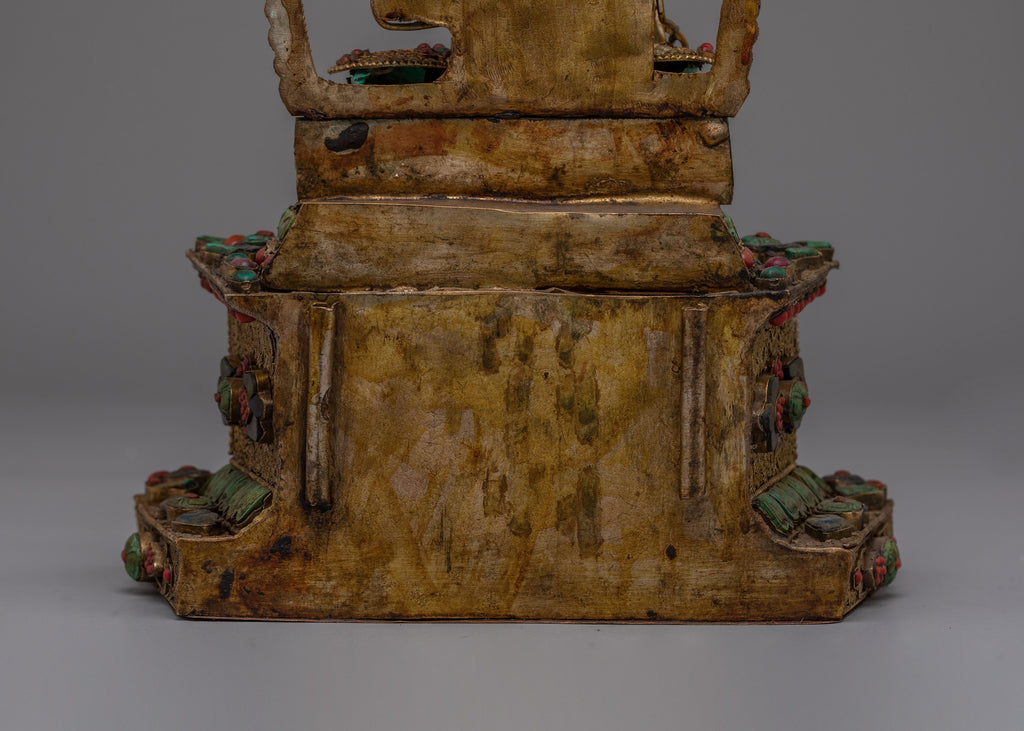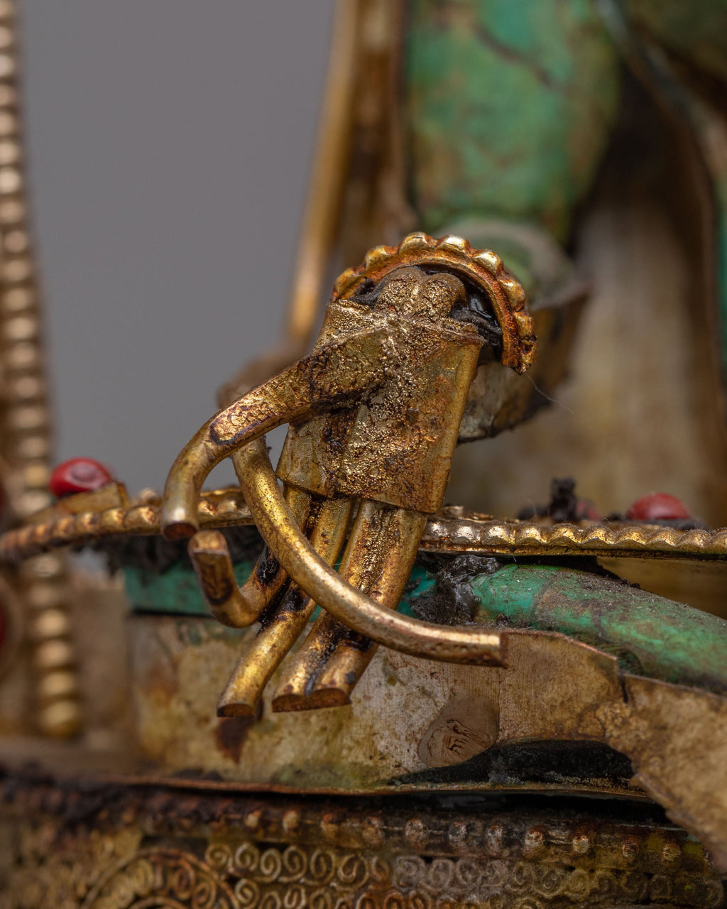 Green Tara’s right hand holds a gesture of offering, while her left hand is outstretched in a gesture of protection and compassion. Her presence serves as a reminder of the qualities of compassion and benevolence that we can embody in our own lives. Whether you place this Green Tara statue on your Buddhist altar, as a spiritual decor piece in your meditation room, or as a symbol of personal transformation in your living space, it is sure to invoke a sense of peace, tranquility, and divine protection. The use of copper, lapis lazuli, and turquoise makes this statue not only a stunning visual piece but also a potent spiritual tool. Green Tara’s presence will surely bring serenity and positive energy to your home, elevating your meditation and daily spiritual practices.