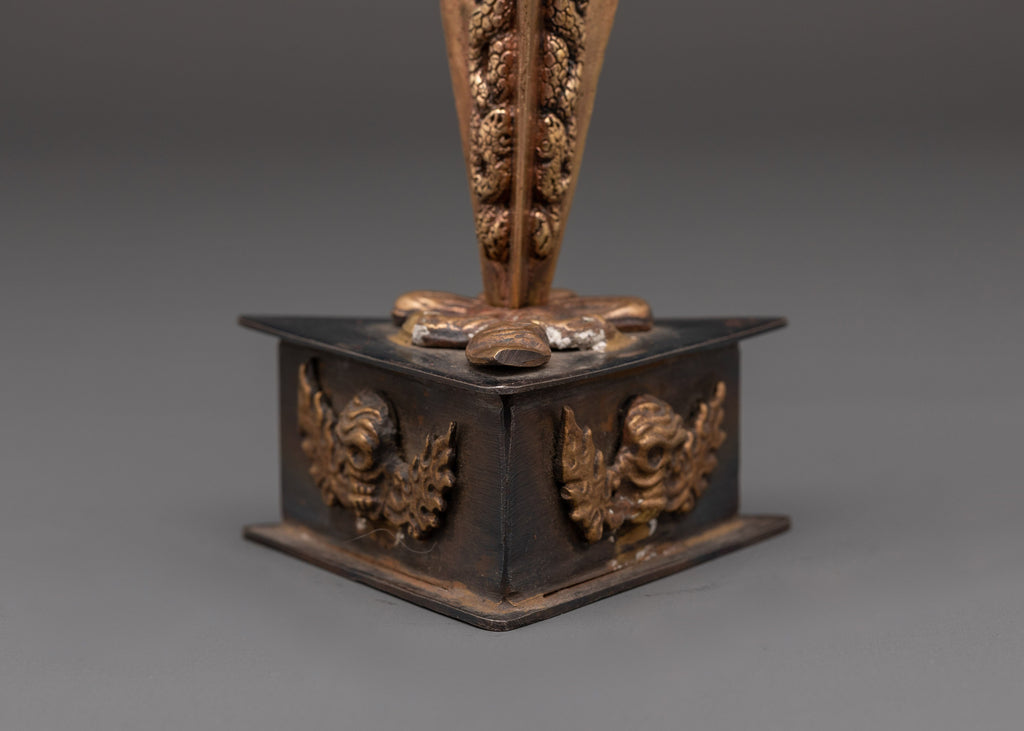 This Tibetan ceremonial dagger is intended for practitioners seeking a more profound spiritual connection through Tantric practice. The Phurba adds clarity and emphasis to rituals by establishing energetic boundaries, empowering objectives, and removing spiritual obstructions.