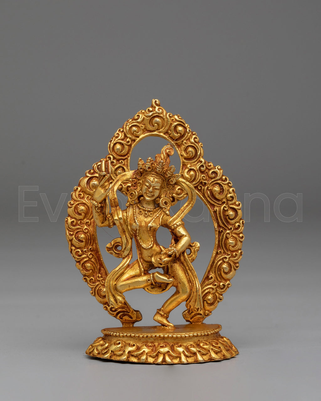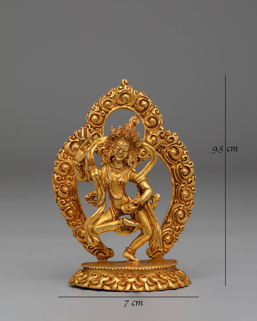 The statue portrays Machig Labdron in her characteristic flowing robes, adorned with gold-plated embellishments that highlight her divine feminine energy. Every detail reflects traditional Tibetan craftsmanship, making it both a devotional object and a work of art. This statue is perfect for practitioners seeking guidance, inspiration, and empowerment, as well as collectors of rare Tibetan Buddhist artifacts. Its compact size makes it easy to place in any space, allowing you to carry Machig Labdron's blessings wherever you go. Embrace the transformative power of this sacred figure and invite profound spiritual growth into your life.