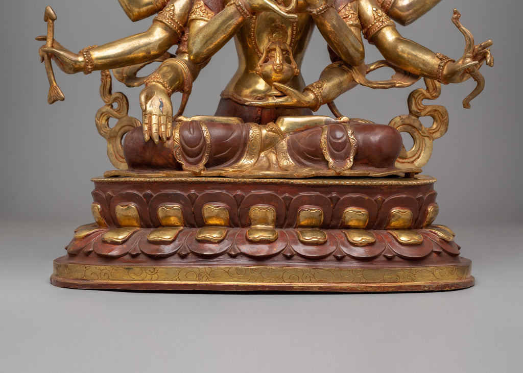 Explore the majestic elegance of the Buddhist Deity Namgyalma Copper Statue with this carefully made copper statue that is embellished with intricate acrylic painting and 24K gold plating. This statue, which is 50 cm tall, is a potent spiritual emblem for your altar or meditation area that invites change, compassion, and protection into your practice.