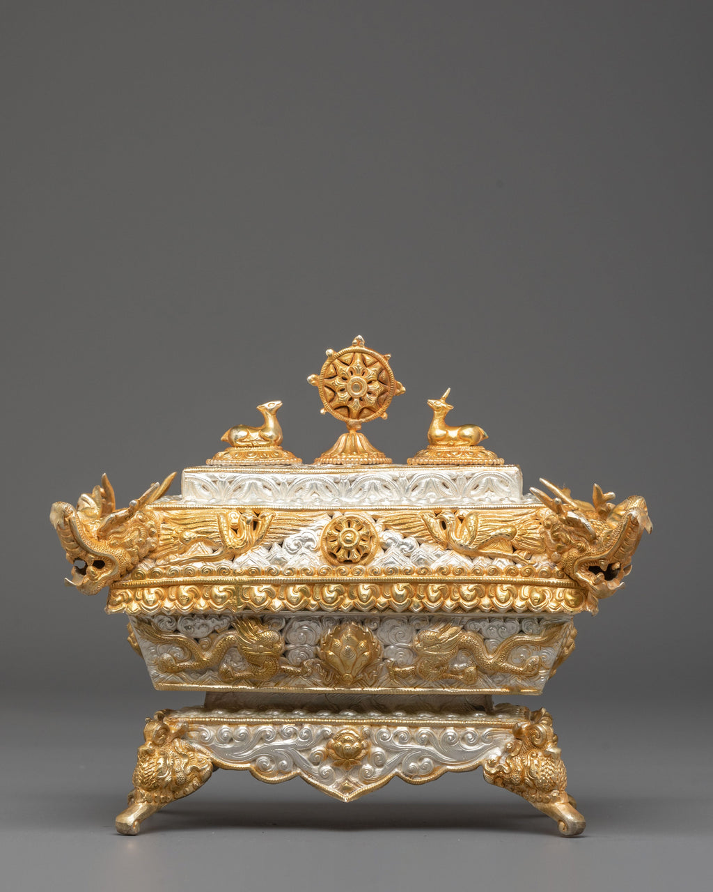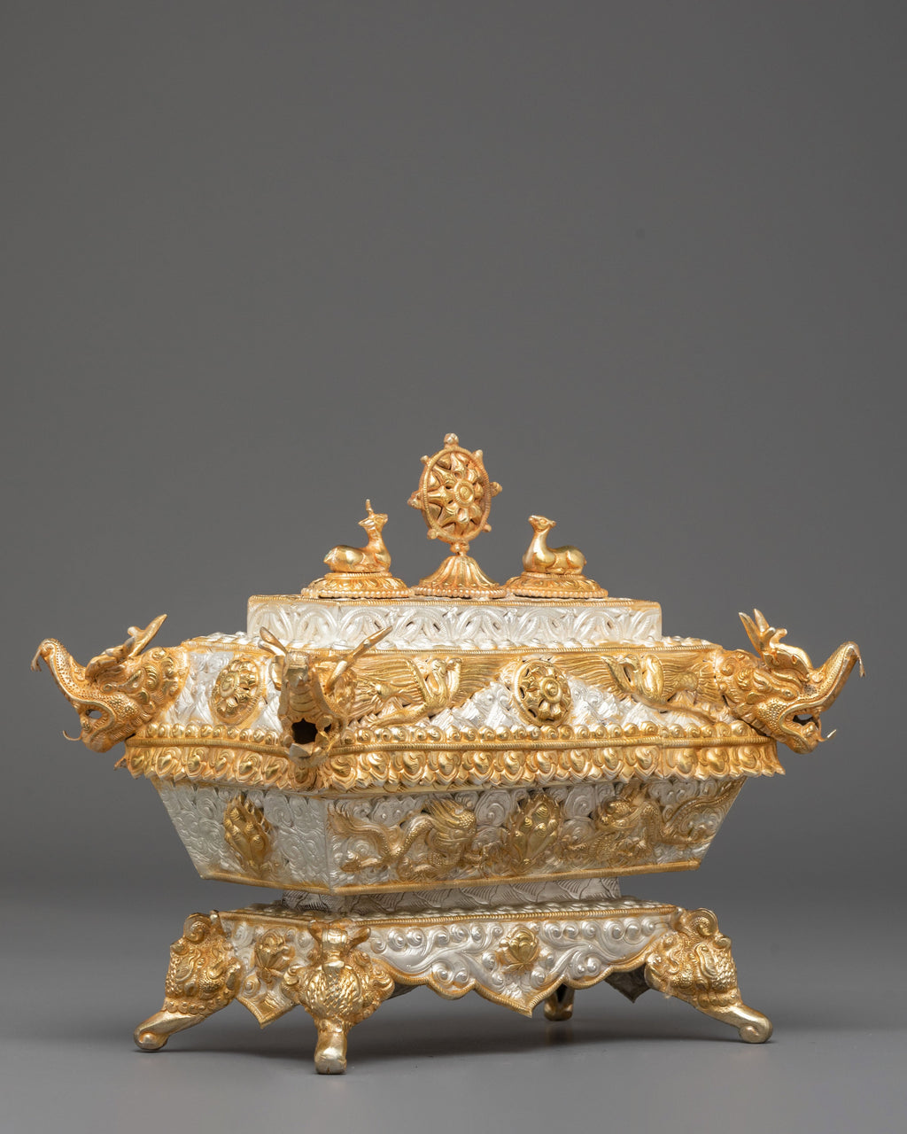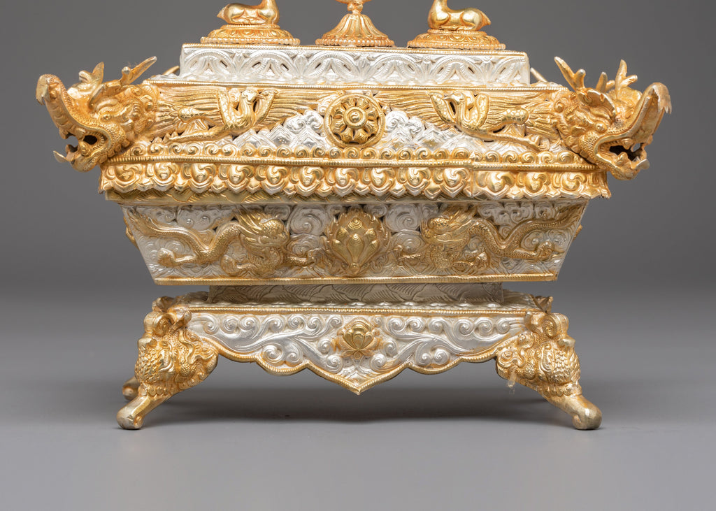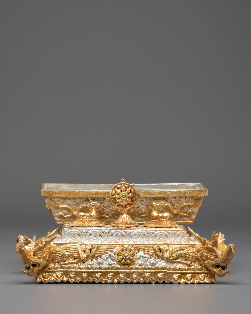 The burner's silver electro plated designs offer spiritual meanings such as protection, harmony, and wealth. The gold-plated and silver plated accents represent spiritual ascending. Each piece is carefully designed to enhance your rituals and bring positive energy into your environment. This incense burner is a work of sacred art intended for those who want to connect profoundly with their spiritual practices.