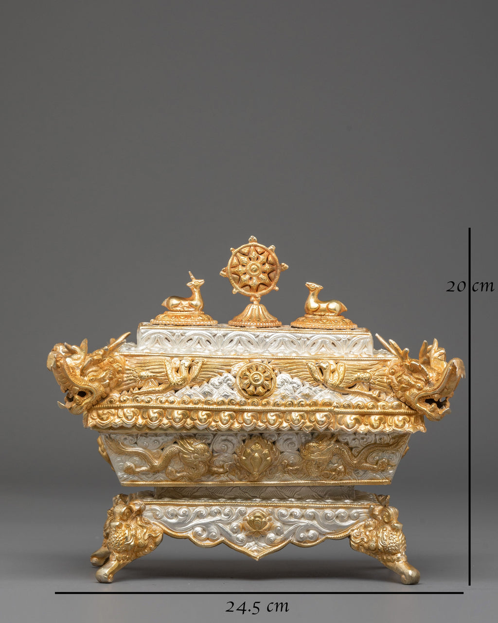 Enhance your spiritual practice with the Sacred Ritual Incense Burner, made of gold electro plated. This incense burner, measuring 20cm in height and 24.5cm in width, is the perfect complement to any meditation or sacred place. Weighing 1.21kg, it provides balance and ensures a smooth experience during rituals. This burner epitomizes purity and spiritual energy, improving your environment during meditation or prayer, making it ideal for enriching your everyday routines or giving as a special gift.