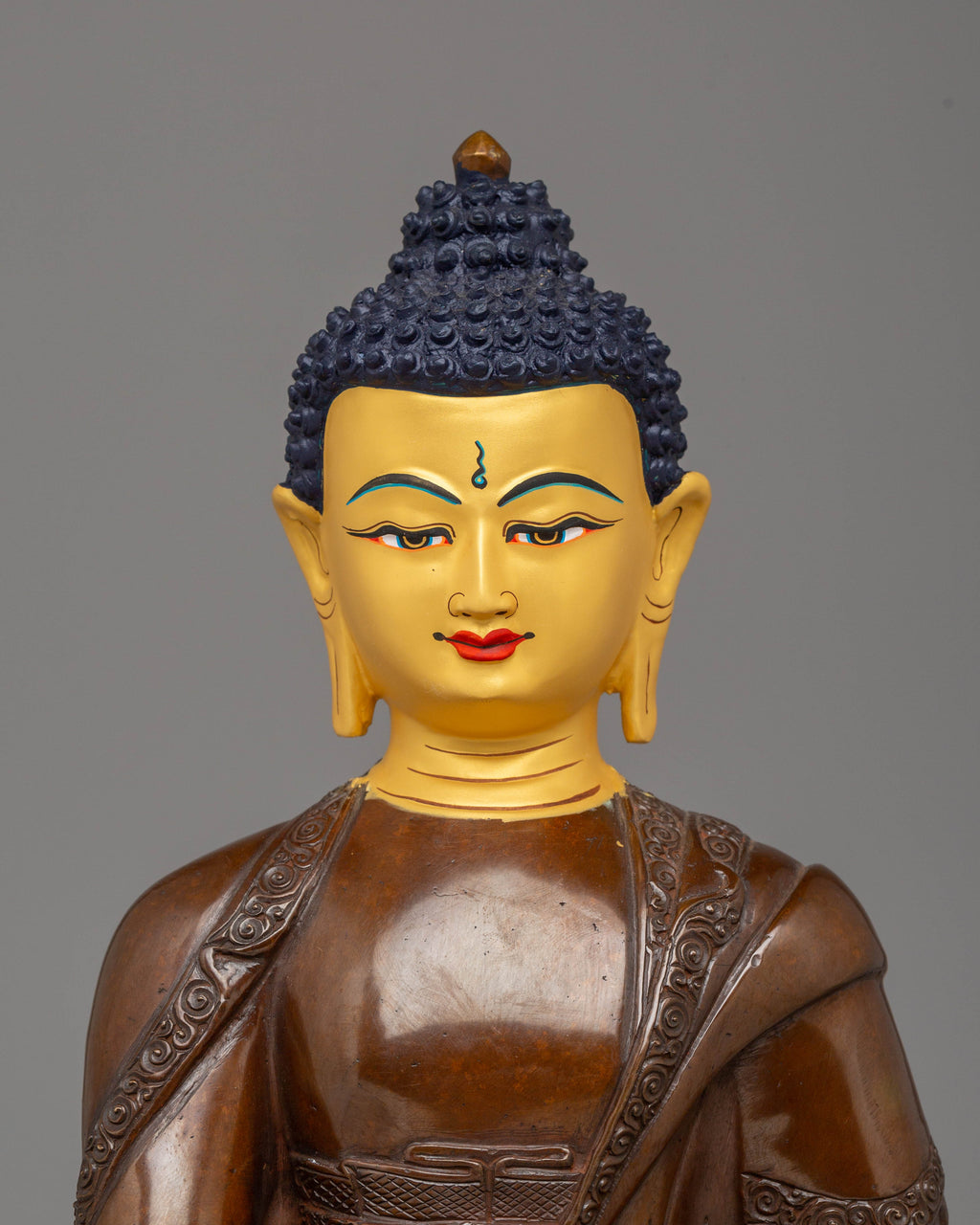Buddha Shakyamuni Sculpture with Gold Plating and Oxidized Copper Body
