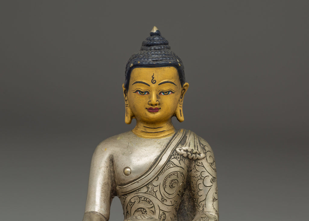 Shakyamuni Buddha Silver Plated Statue | Sculpture for Peace and Enlightenment