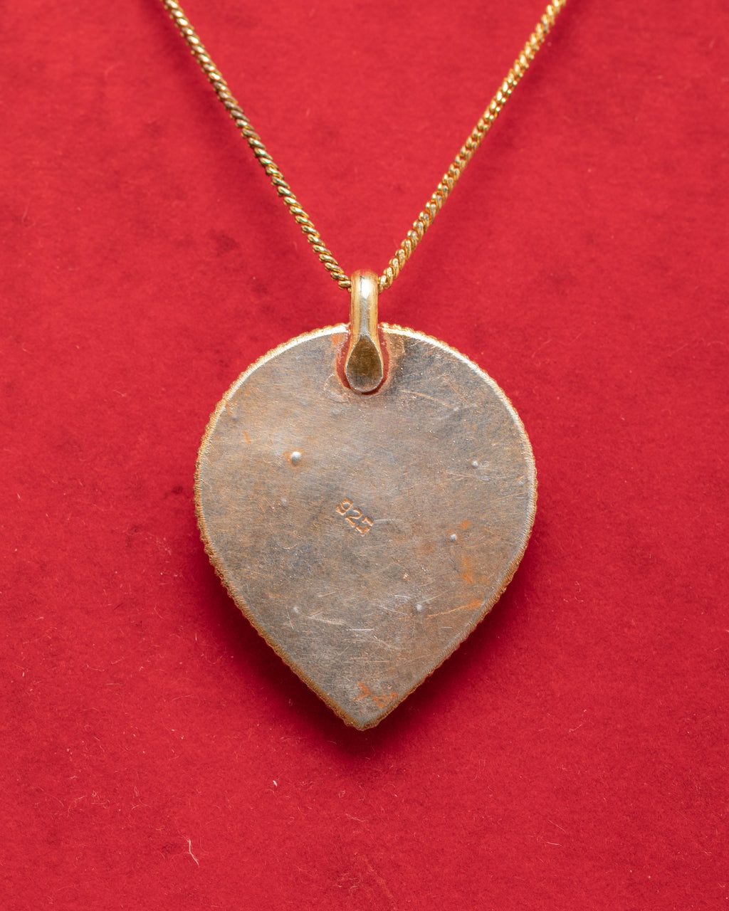 A Buddhist locket is a piece of jewelry designed to hold a small prayer, mantra, or image related to Buddhist practice. The locket may feature a design or image of a Buddhist deity, such as the Buddha, or a representation of a sacred symbol, like the lotus flower. It is typically worn as a talisman to remind the wearer of their spiritual path and to offer protection. Some Buddhist lockets are also used as a form of religious devotion and are frequently given as gifts to friends and family members to provide them with spiritual support and blessings.