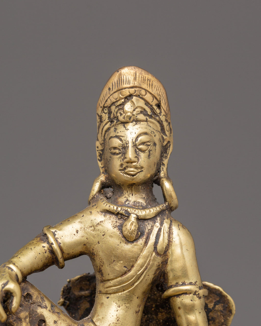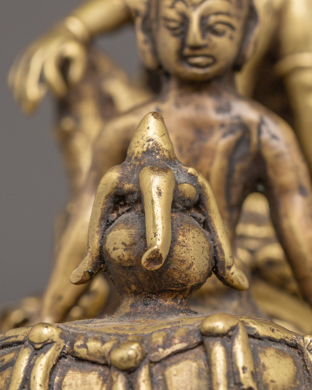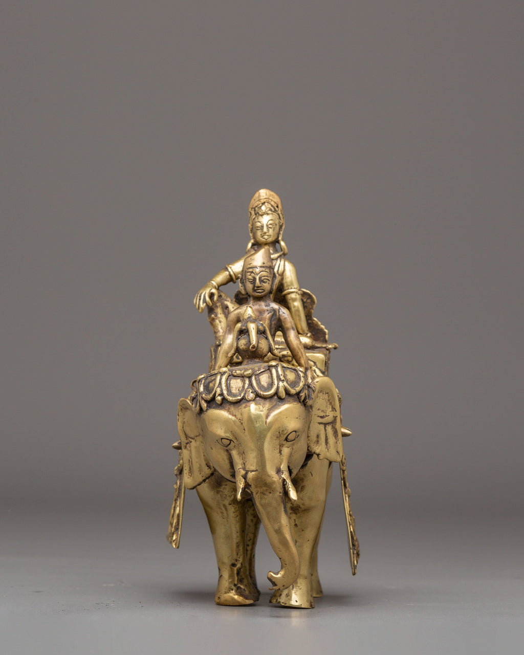 The Handcrafted Tibetan Elephant Art with Indra is a remarkable bronze sculpture that reflects deep spiritual symbolism and refined Himalayan craftsmanship. Made from a bronze body, this detailed artwork portrays Indra seated atop the elephant, accompanied by an attendant figure, representing divine leadership, strength, and guardianship. The rich bronze surface enhances the sculptural depth, making it a striking piece for spiritual decor, collectors, or cultural art enthusiasts.