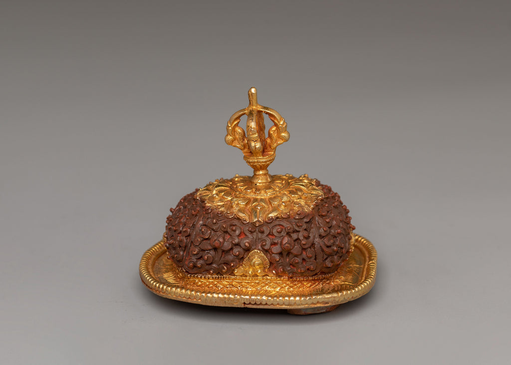 The Kapala set holds the nectar used in higher esoteric rituals. It offers liberation to gods and deities, ensuring their devotion. The offerings are said to be transformed into the Wisdom Nectar, a liquid form of the deity's Enlightened Mind.