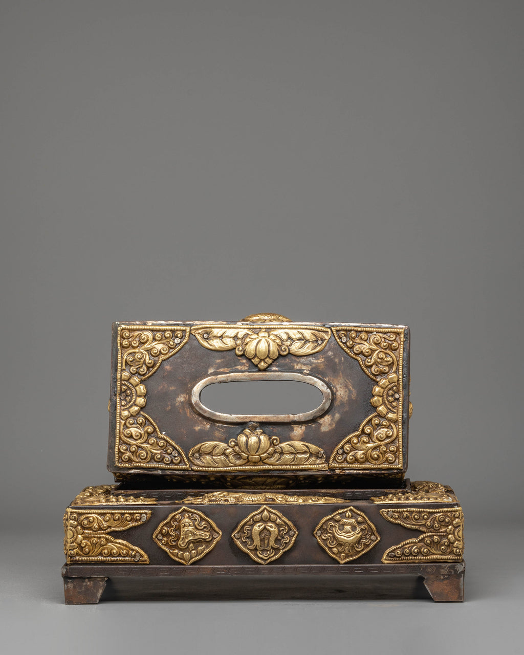 Tibetan Brass Tissue Holder | Sacred Motif Home Accent