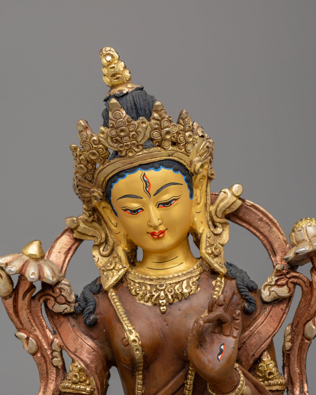 Sacred White Tara Statue | Gold and Silver Plated Buddha Art
