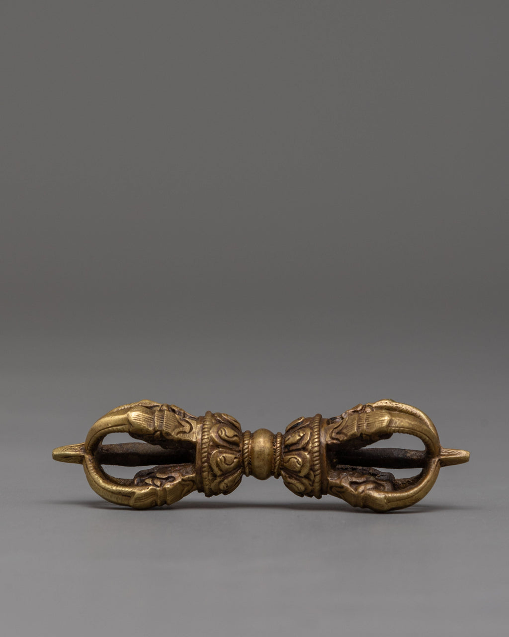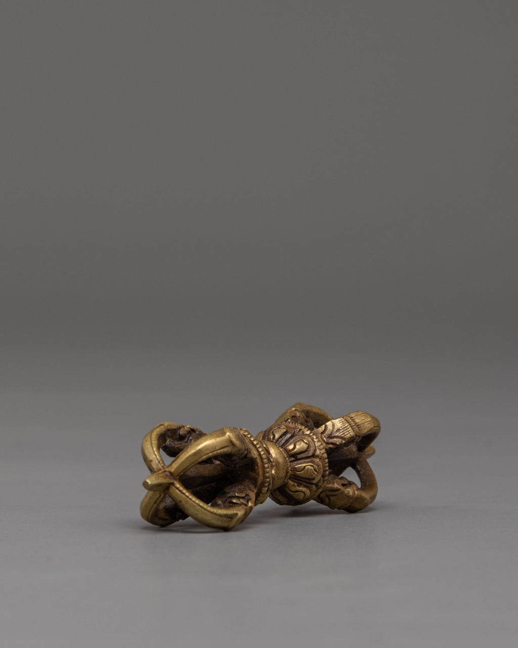 Immerse yourself in the sacred world of Tibetan Buddhism with this Handcrafted Vajra and Bell set, a harmonious fusion of spiritual devotion and intricate craftsmanship. This exquisite set is meticulously handcrafted from brass and bronze, two metals revered for their spiritual significance and strength in Buddhist iconography. Standing at 12 cm in height and 5.5 cm in width, the bell and vajra set exudes an aura of divine energy, perfect for meditation, rituals, or as an awe-inspiring decorative piece. The vajra, with its 2.5 cm height and 10 cm width, symbolizes the indestructible and powerful nature of enlightenment. Its symbolism is profound — the vajra represents the ultimate force of spiritual transformation, embodying the thunderbolt of wisdom that cuts through ignorance, while the bell represents the feminine aspect of wisdom, the sound of truth that awakens the heart.