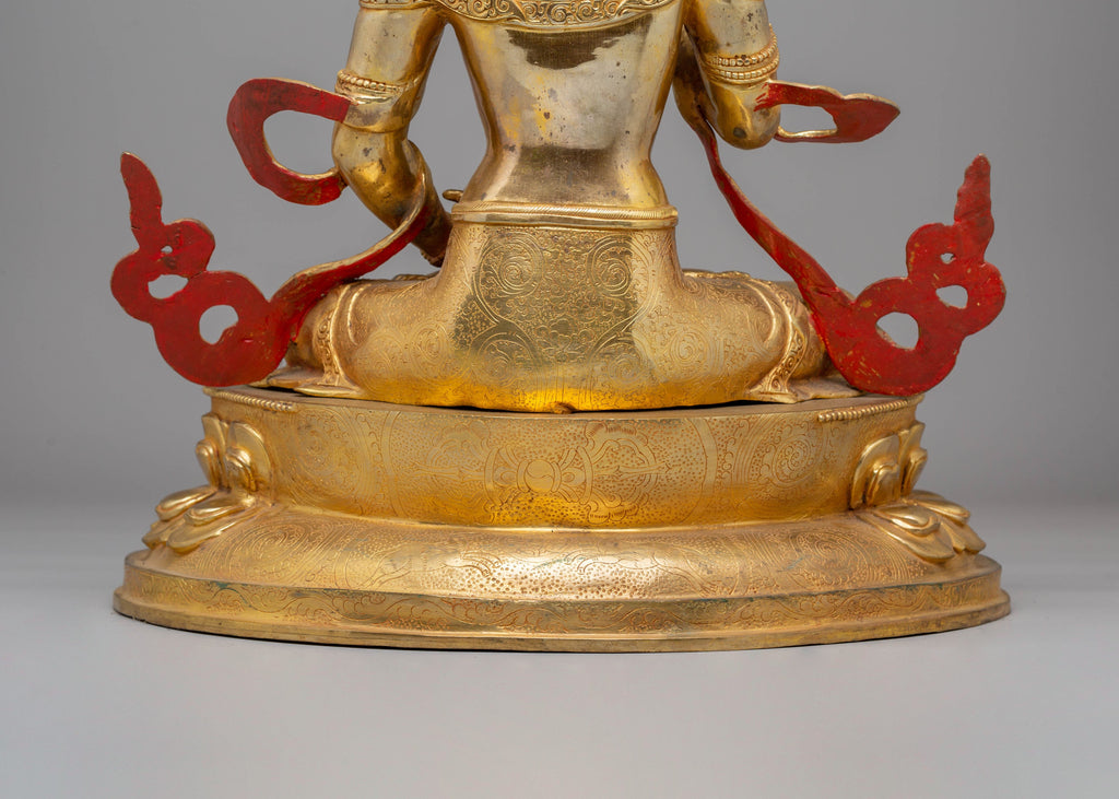 This Handcrafted Vajrasattva Statue for Altar is a stunning example of traditional Himalayan craftsmanship, beautifully combining copper, 24k gold plating, and acrylic color. Standing at 48.5 cm tall and 38 cm wide, this statue depicts Vajrasattva in a serene and powerful pose, symbolizing purity and spiritual transformation. Its intricate details and radiant finish make it a striking centerpiece for any altar, meditation space, or sacred shrine.