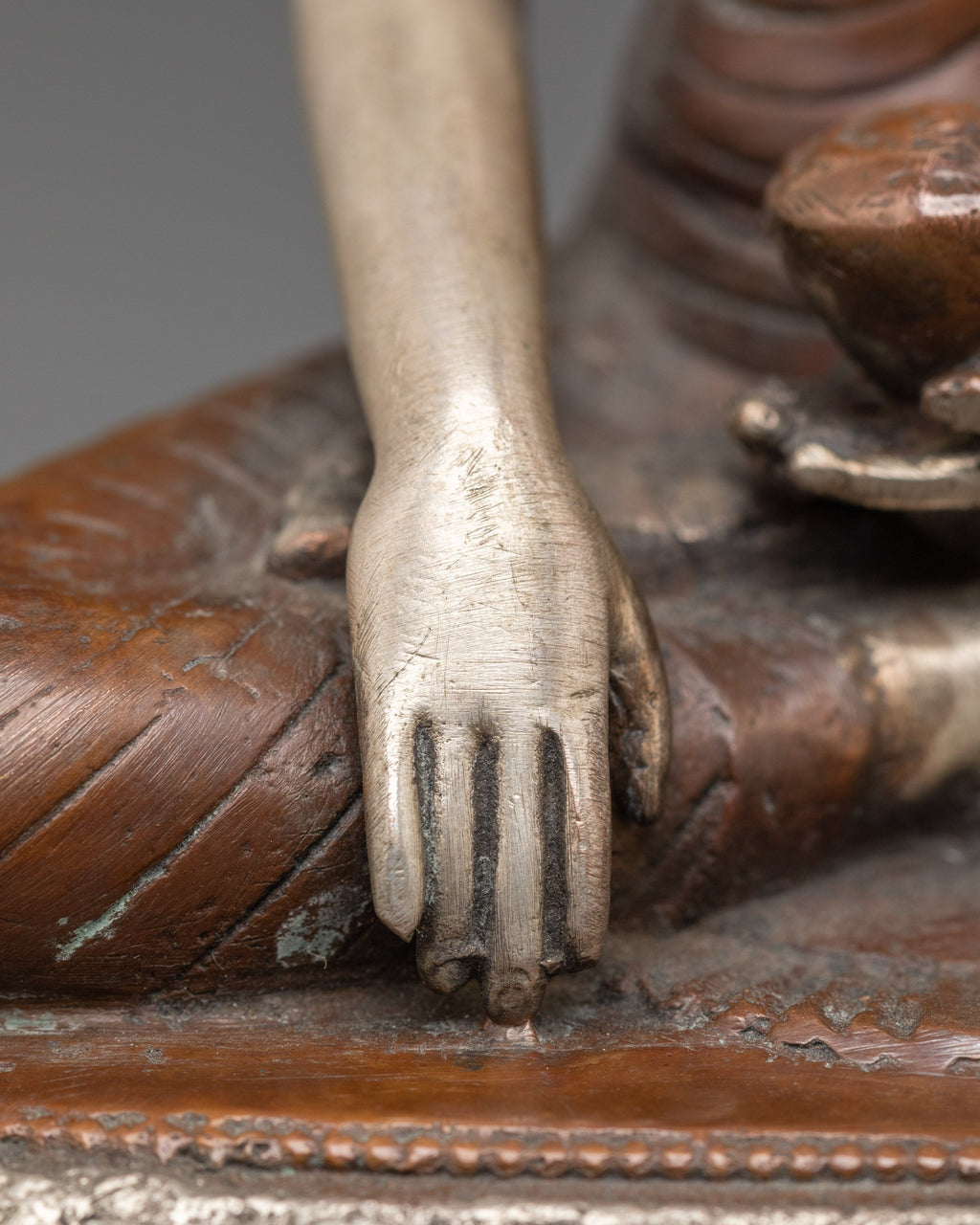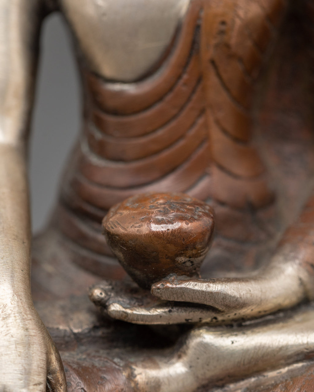 Invite harmony and serenity into your space with this Awakened Shakyamuni Buddha Statue, beautifully handcrafted from oxidized copper and finished with a gentle silver plating. This sacred figure represents Siddhartha Gautama, the historical Buddha, seated in deep meditation. With its soft expression and calming posture, the statue reflects the profound moment of spiritual awakening and mindfulness. It's ideal for a personal altar, meditation space, or peaceful corner in your home.