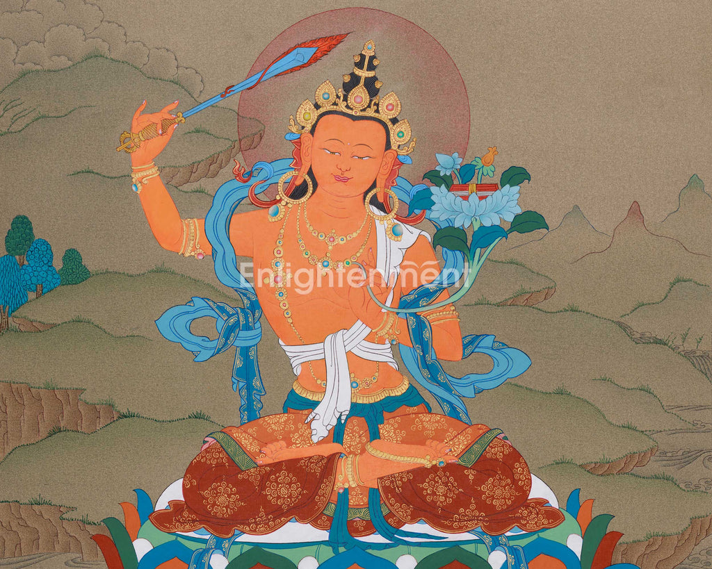 Handmade Bodhisattva Manjushri Thangka | Buddha of Knowledge and Spiritual Enlightenment