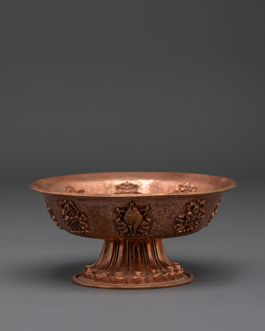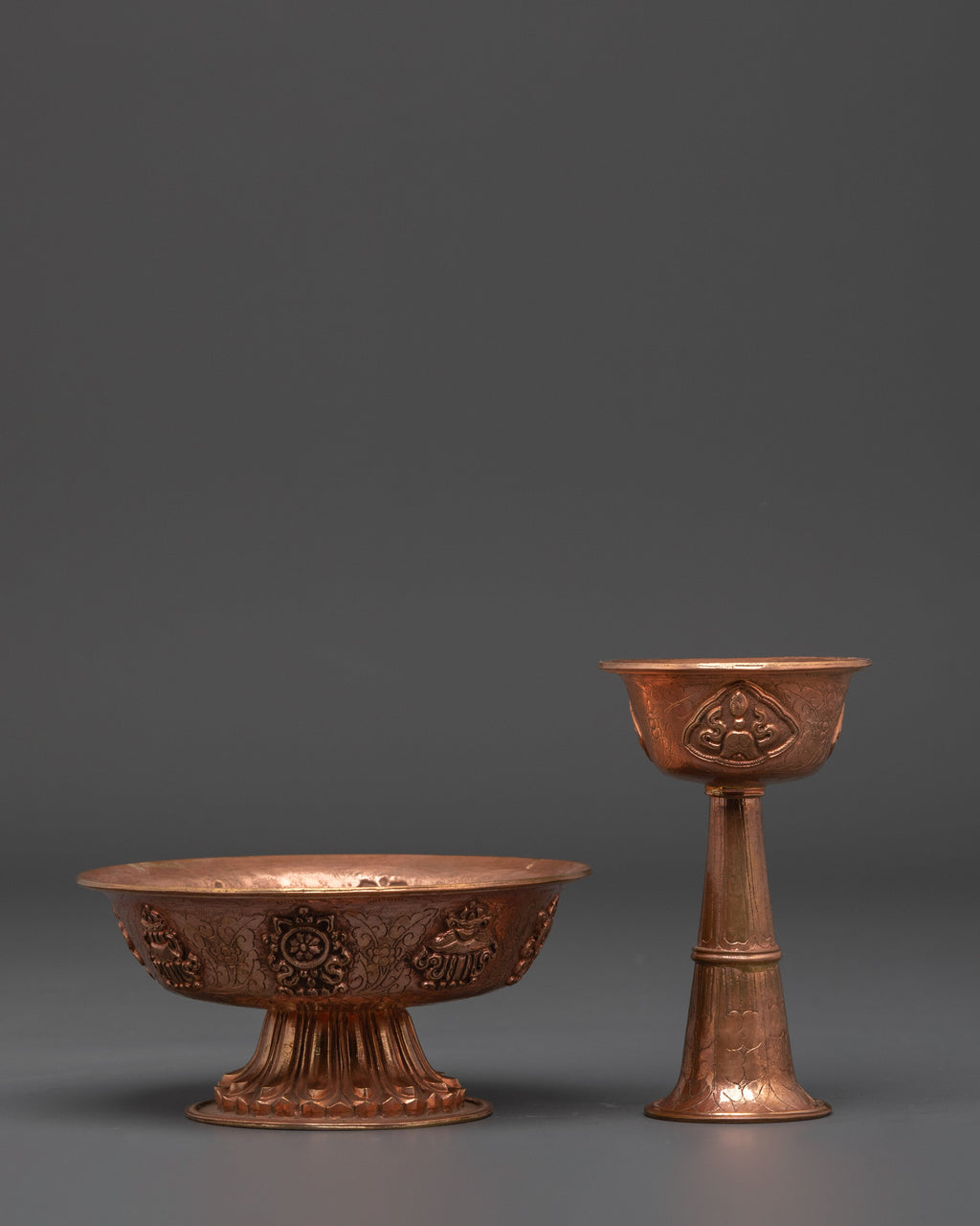 This set amplifies the importance of your Buddhist practice with its elegant and harmonious design, reflecting the essence of Tibetan Buddhism. Ideal for placement on your altar, shrine, or meditation space, it supports your spiritual rituals with grace. Weighing only 0.23 kg, this beautiful offering bowl is lightweight and easy to handle, while maintaining a strong sacred presence in your environment.