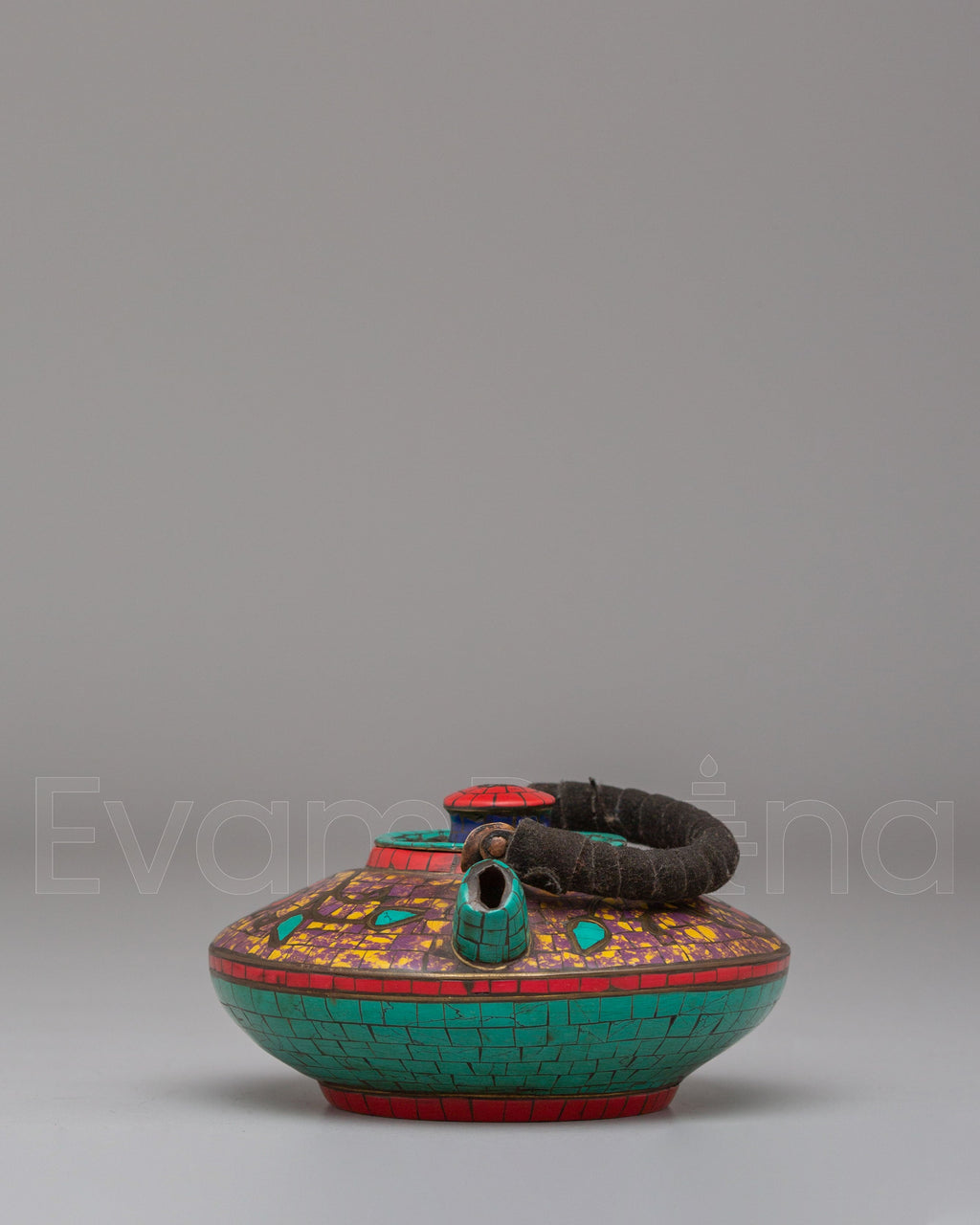 The coral red stone symbolizes vitality and protection, while the turquoise represents healing and spiritual growth. Together, these stones amplify the energy of your offerings, making each ceremony more powerful and meaningful. Whether used during daily rituals or special ceremonies, this handcrafted teapot creates a sacred atmosphere that fosters balance, harmony, and positive energy. Its compact size allows you to place it on your altar or in a designated spiritual area, keeping it close to your heart as you connect with higher consciousness through prayer and meditation.