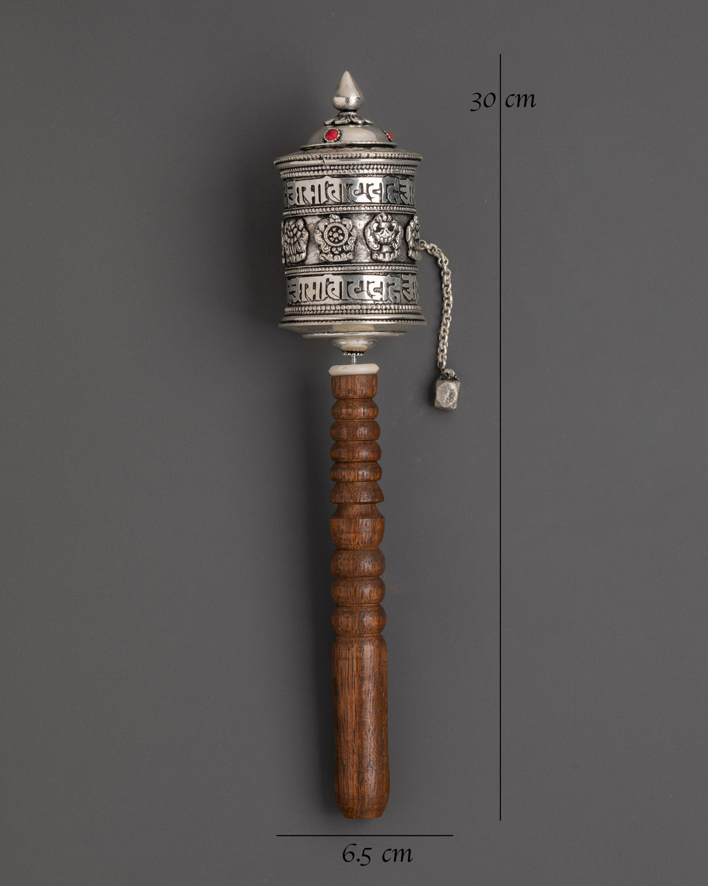 Experience peace and sacred energy with this Handmade Copper Buddhist Prayer Wheel, measuring 30cm in height and 6.5cm in width, with a lightweight design of 0.17kg. Crafted from copper, brass, wood, white metal, and coral stone, this prayer wheel embodies the essence of Tibetan spirituality. The engraved “Om Mani Padme Hum” mantra represents compassion, enlightenment, and positive transformation. When spun during prayer or meditation, it is believed to release blessings, bringing calmness and serenity to your surroundings.