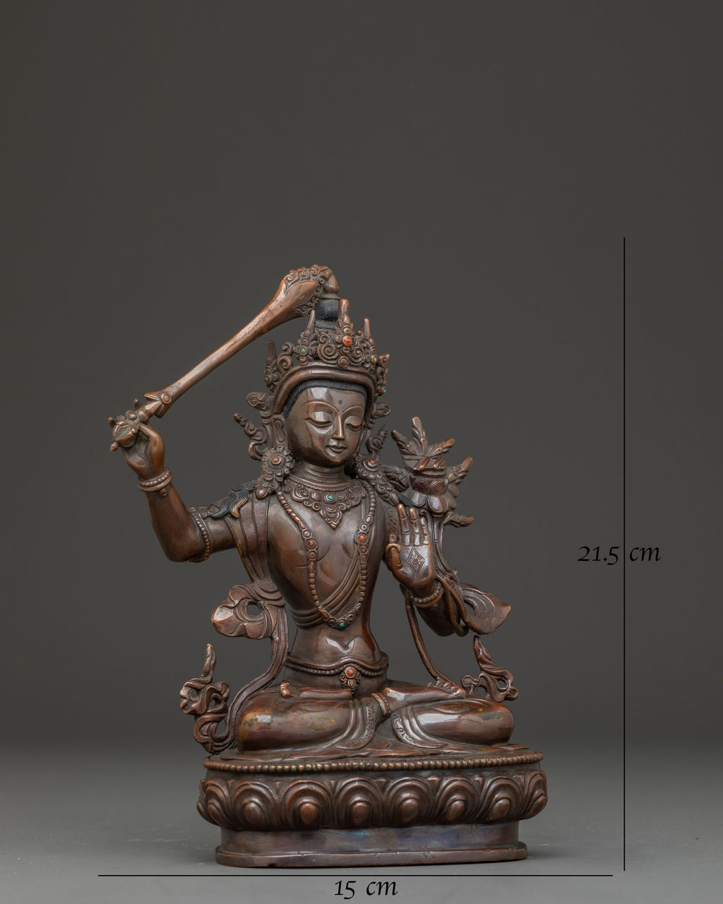 Oxidized Handmade Copper Manjushri Statue | Symbol of Divine Wisdom