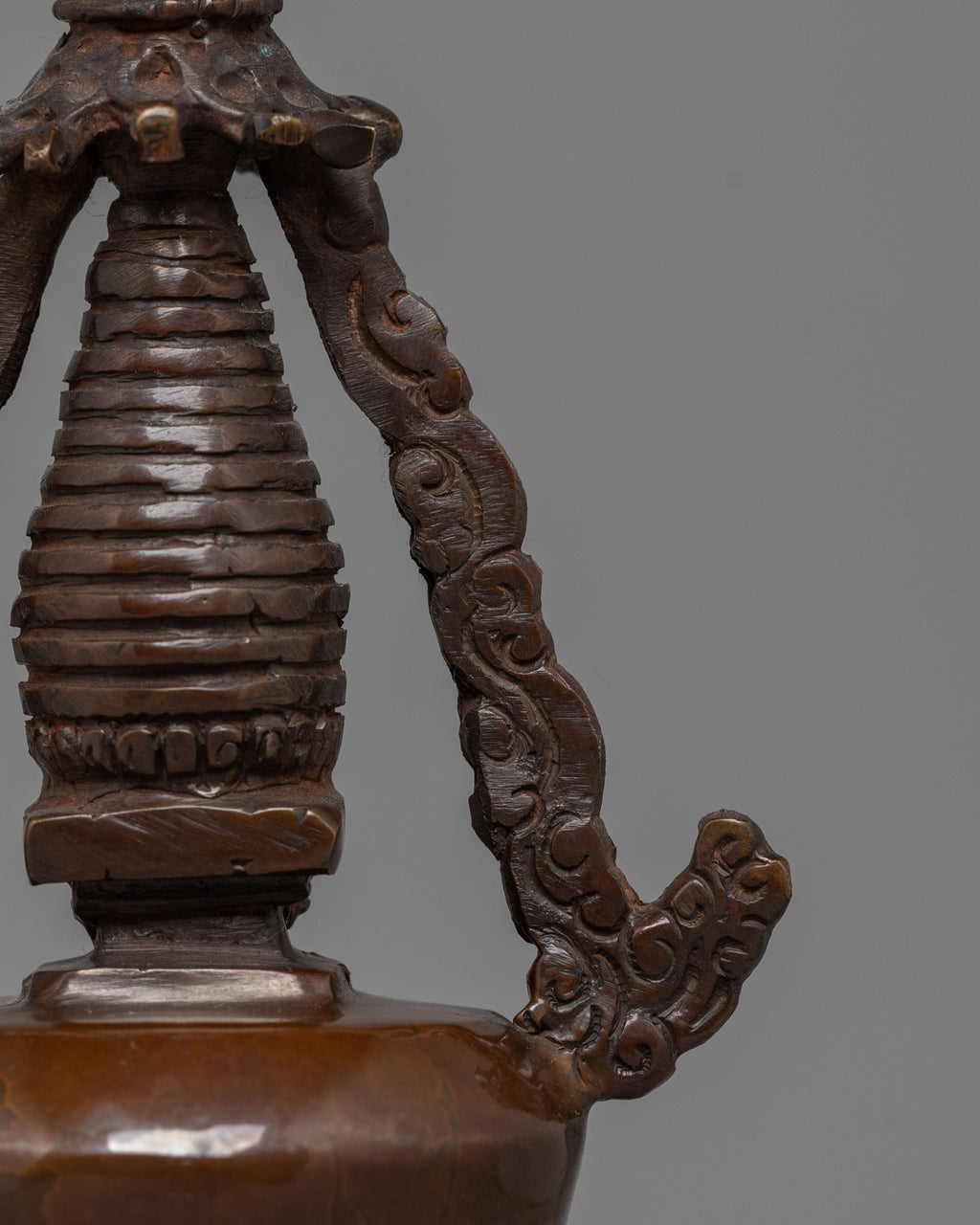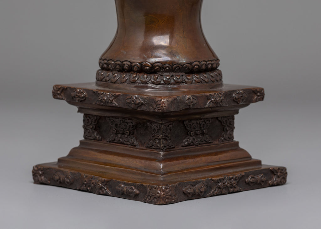 As a decorative copper stupa, this sculpture is more than just an ornament. It holds profound meaning in the Buddhist tradition, symbolizing the path to enlightenment. Whether displayed in your living room, placed on a meditation altar, or given as a thoughtful gift, this oxidized copper stupa sculpture will add beauty and spiritual depth to any space, helping you discover peace and tranquility through its presence.