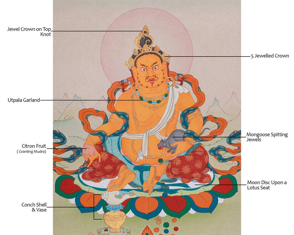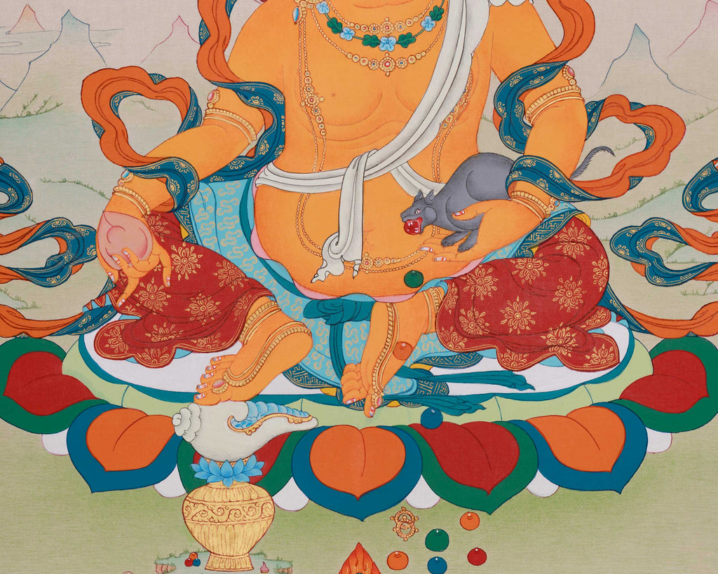 Original Handmade Dzambhala Thangka | The Divine Protector of Wealth and Fortune