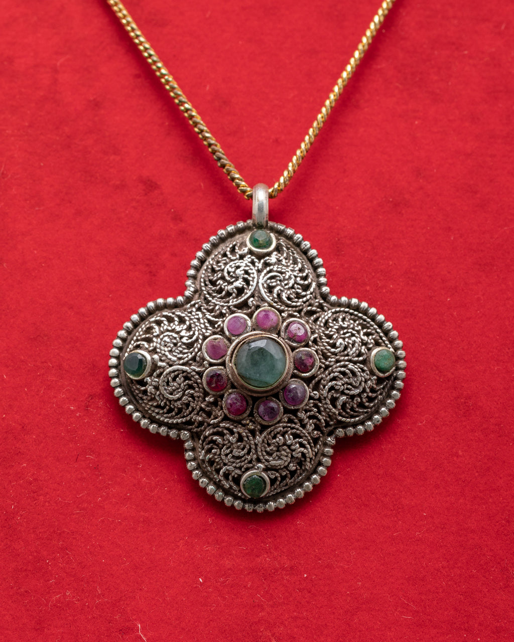 Sacred Traditional Silver Jewelry | Ruby Emerald Stone Locket