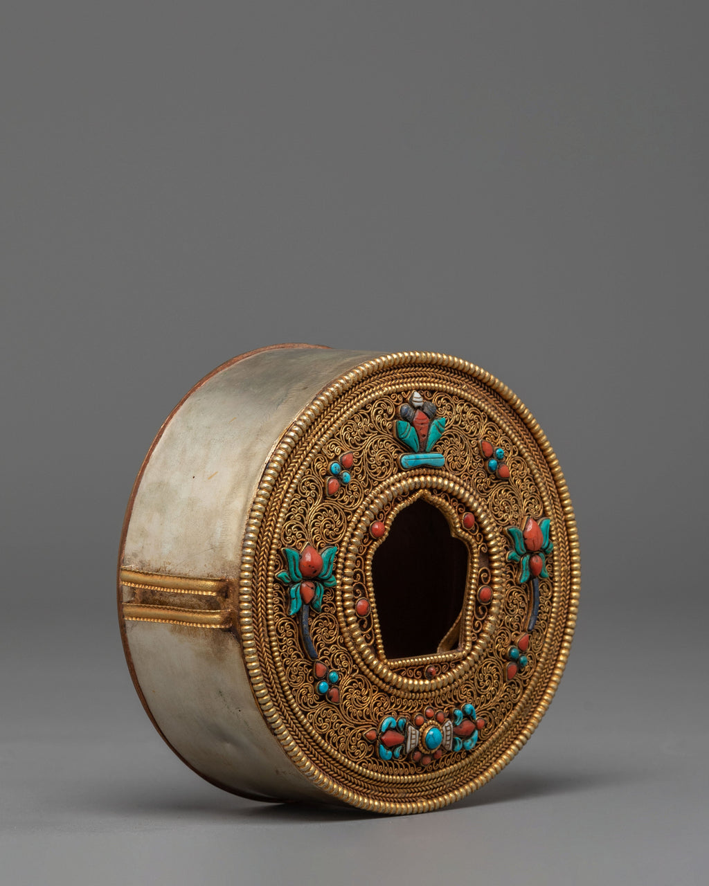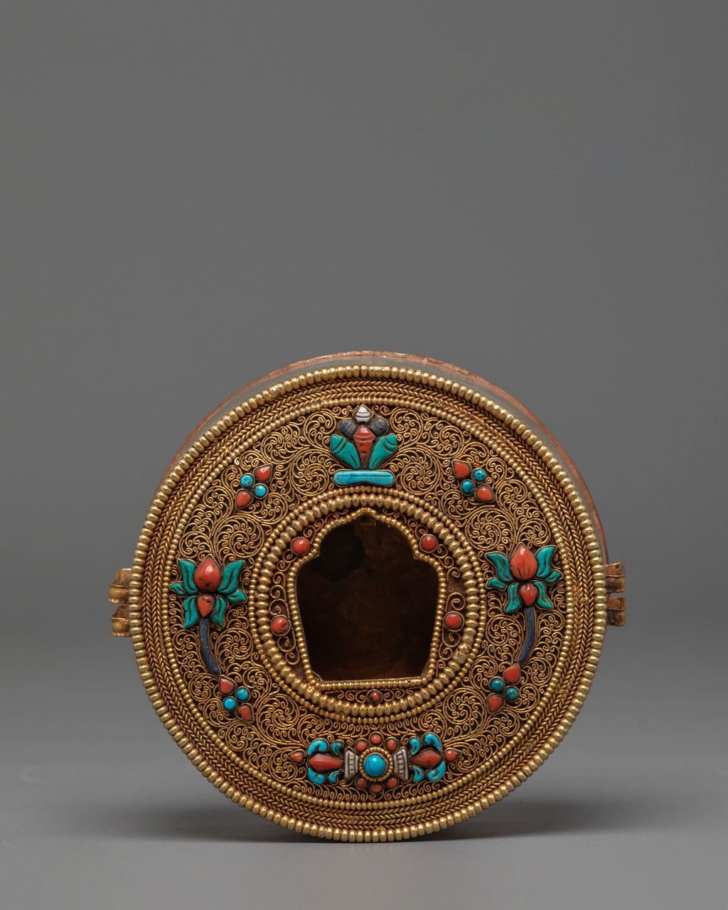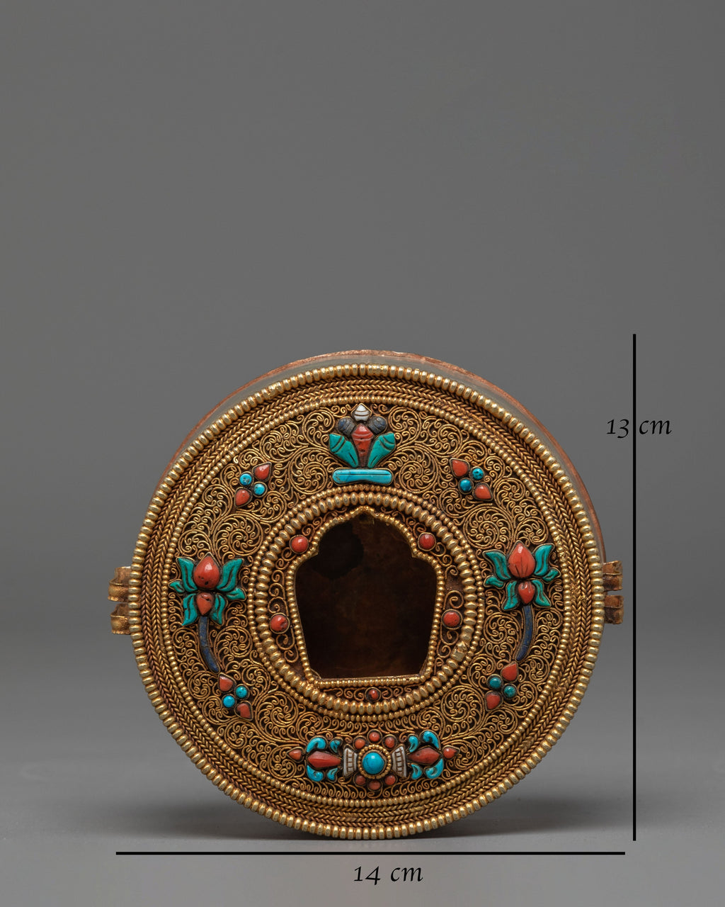 This Handmade Gold Plated Ghau Box is not only a stunning decorative piece but also a powerful spiritual tool. Whether for ritual use or as a sacred adornment in your home, this piece will bring both beauty and meaning to your space. It makes a perfect gift for those who appreciate Tibetan art, culture, and spirituality, or for anyone looking to deepen their connection with sacred practices.