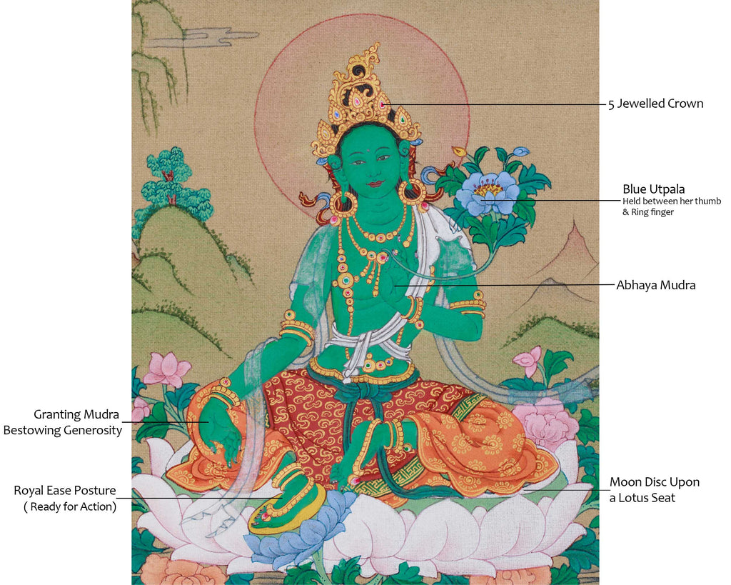 Original Handmade Green Tara Painting | The Divine Mother Who Removes Fear and Brings Enlightened Peace