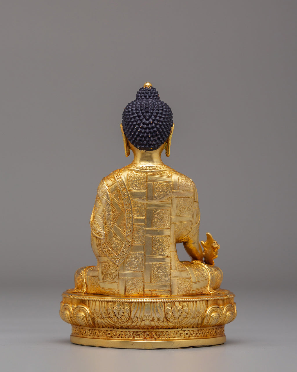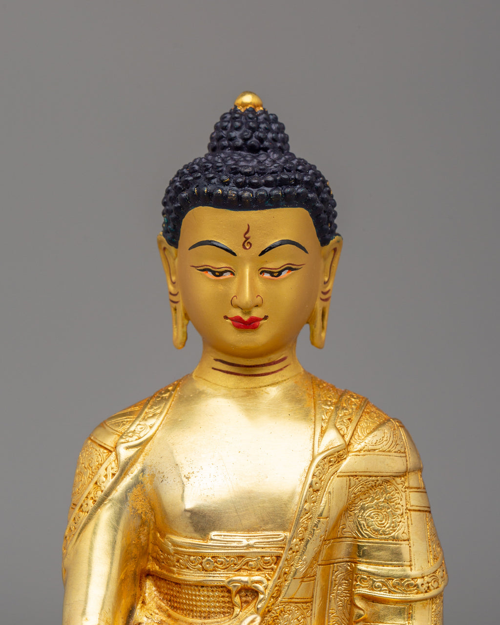 This Handmade Medicine Buddha Buddhist Statue is a beautifully crafted copper body with 24K gold plating and acrylic color detailing. Standing 16cm tall and 11cm wide, this statue embodies peace, healing, and spiritual well-being. Weighing 0.8kg, it is a substantial addition to any altar, meditation space, or sacred area, serving as a powerful symbol of health, compassion, and mindfulness.