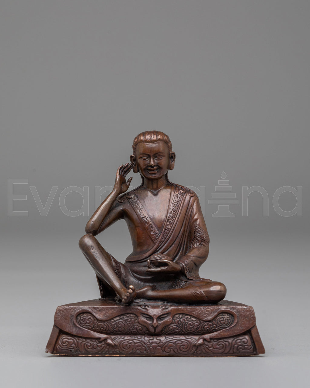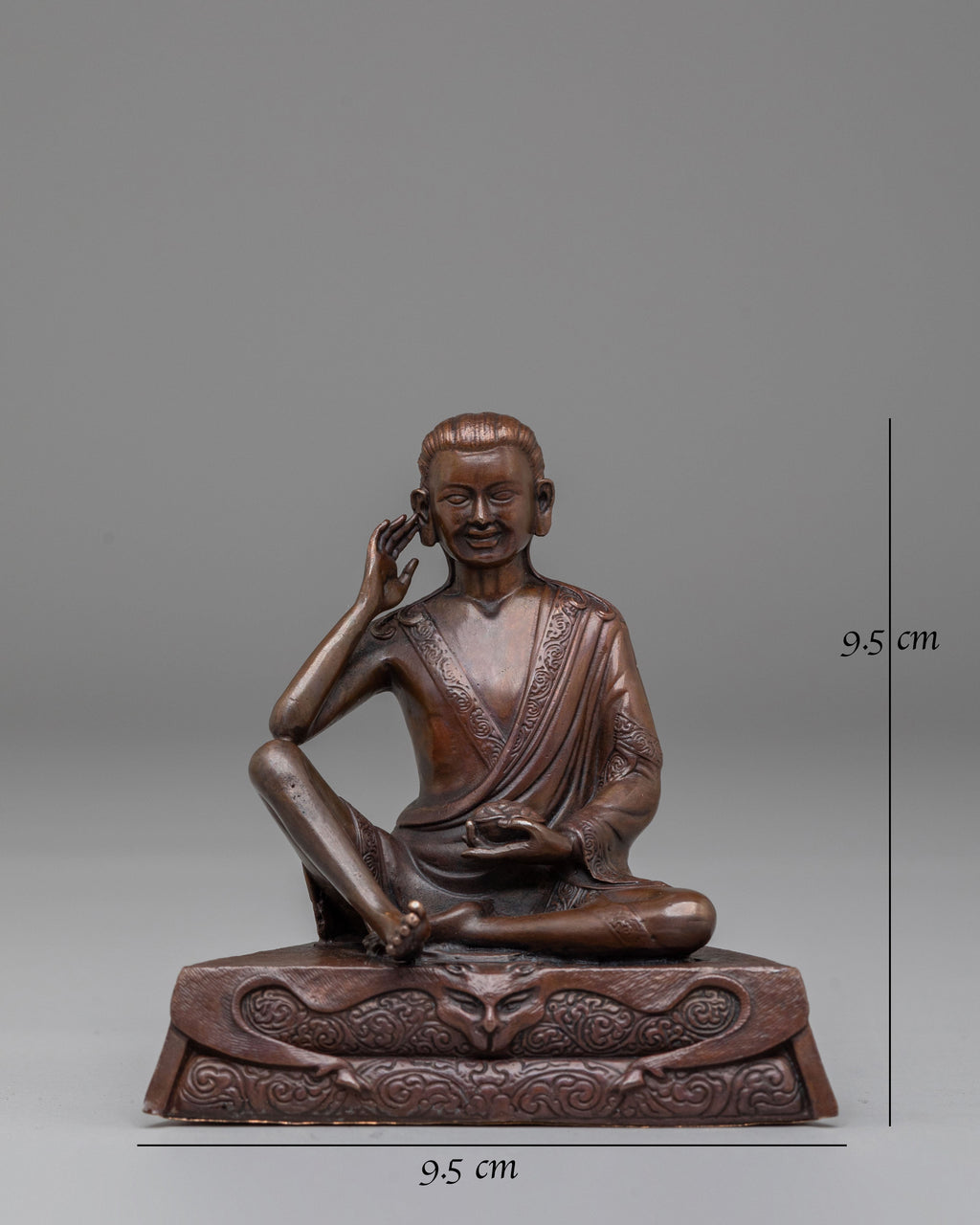The oxidized copper body adds depth and character to the statue, giving it a timeless, antique appearance that enhances its spiritual presence. This Milarepa statue is ideal for meditation practices, spiritual rituals, or as a meaningful gift for those seeking guidance on their spiritual journey.