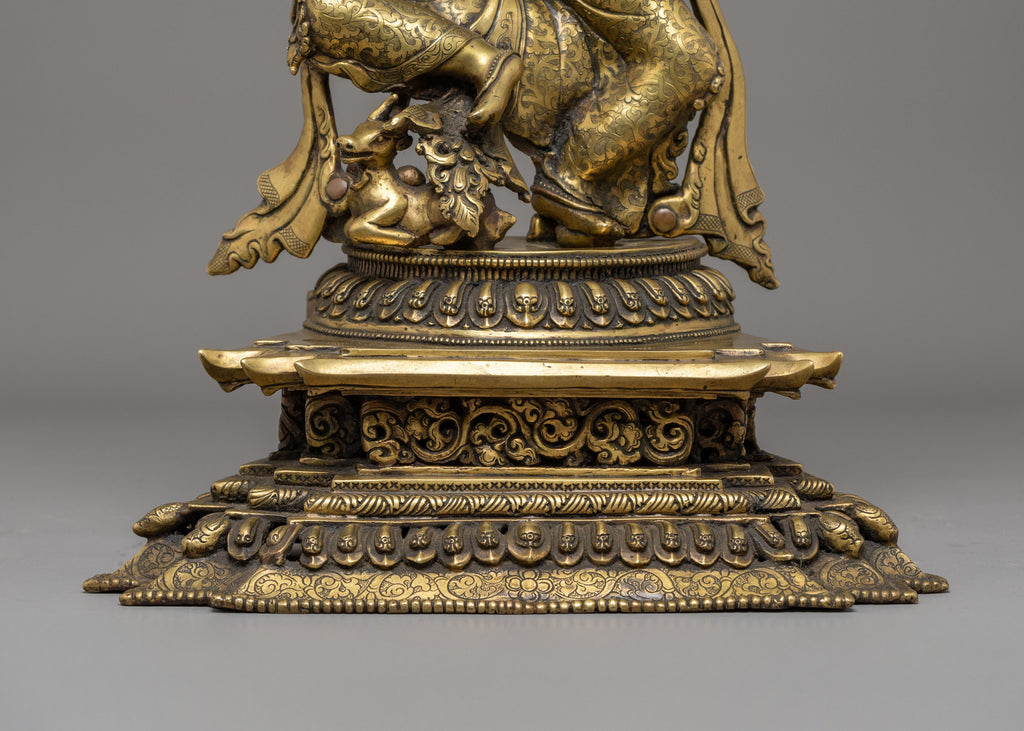 Standing 58 cm tall and 35.5 cm wide, this Handmade Nityanath Shiva Statue with Nandi is a remarkable bronze creation, weighing 12.91 kg and crafted with exquisite precision by traditional Indian artisans. The statue portrays Lord Shiva in his divine Nityanath form, radiating calmness, wisdom, and strength. Every detail—from the flowing robes and adorned ornaments to the serene expression—reflects deep devotion and artistic mastery. This handcrafted bronze sculpture captures Shiva's presence as the eternal consciousness, bringing a sense of peace and sacred energy to your home, temple, or meditation space.
