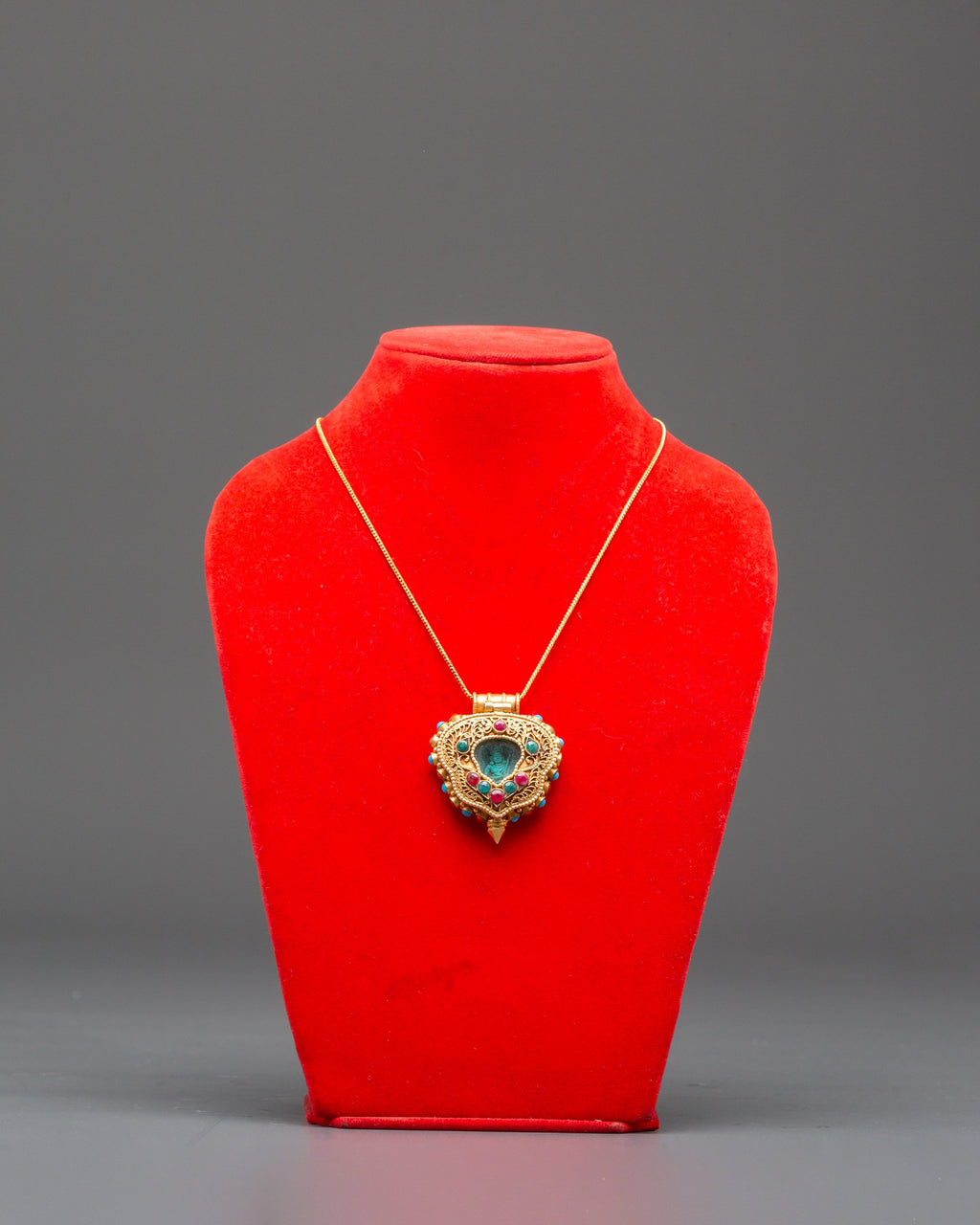 This Tibetan Ghau Box Locket is more than simply an ornament; it is a spiritual tool meant to take Padmasambhava's blessings with you. This locket is ideal for individuals on the Buddhist path, collectors of Tibetan jewelry, or anybody looking for a protective and meaningful piece of jewelry. It serves as a continual reminder of Padmasambhava's teachings. This Padmasambhava Ghau Box Locket, worn daily or during meditation, is a potent piece of spiritual jewelry that offers wisdom, protection, and inner calm.