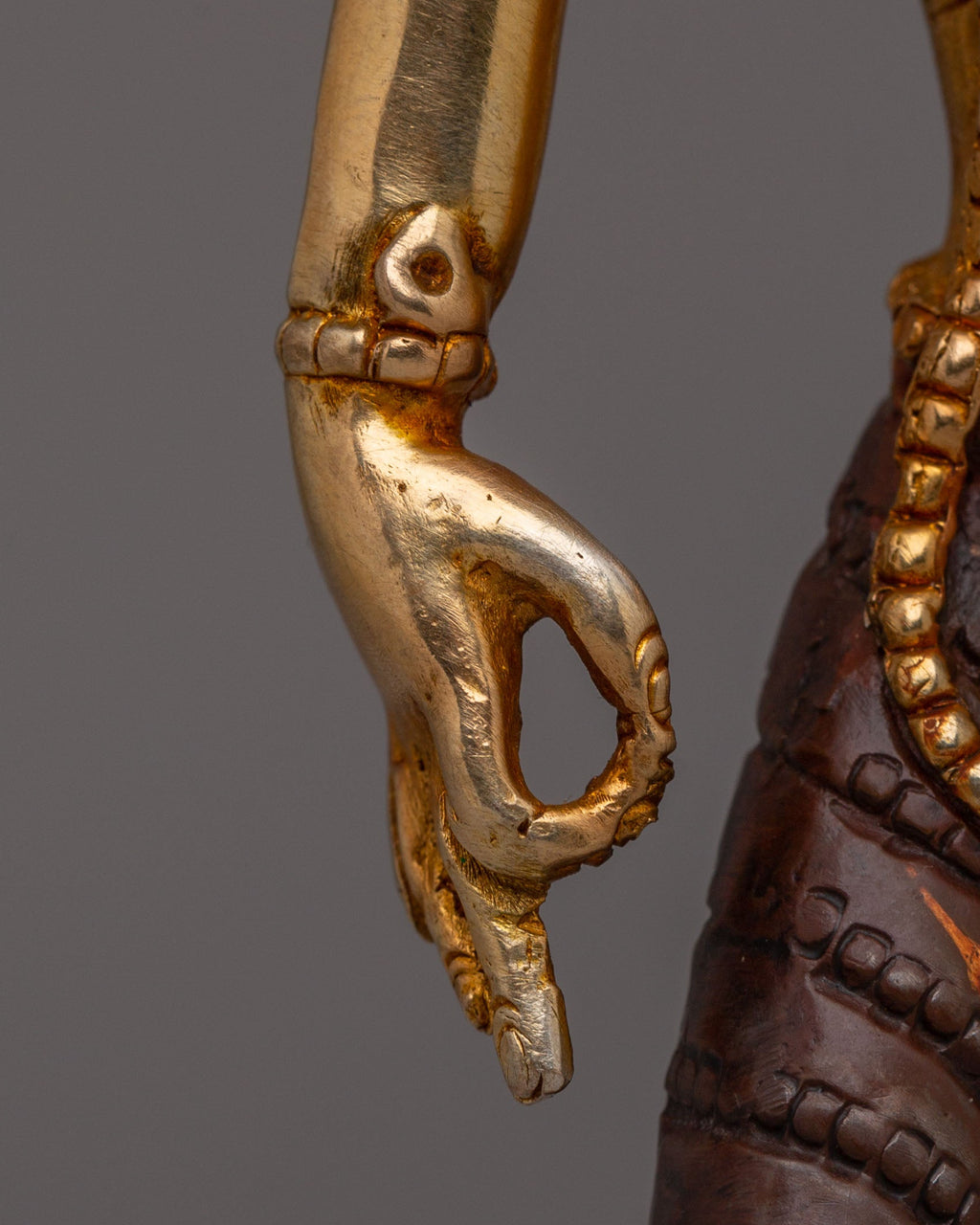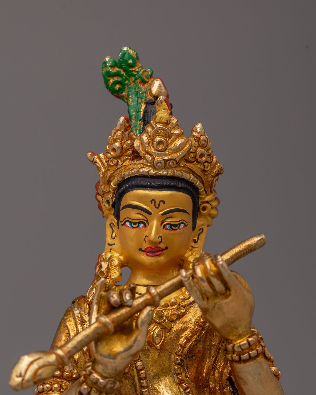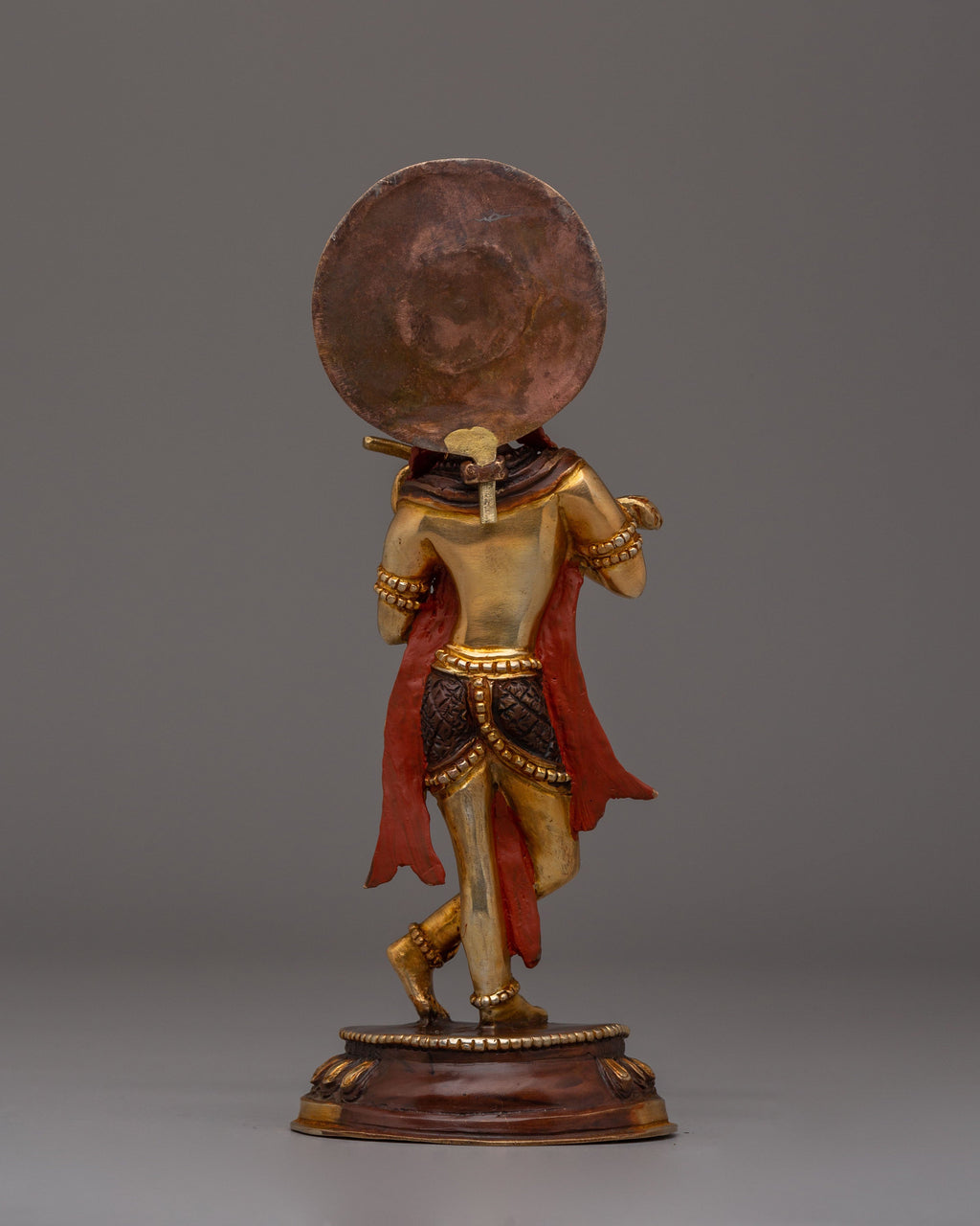This exquisite Handmade Radha Krishna Statue captures the essence of love, devotion, and harmony. Crafted from copper and adorned with 24K gold plating and vibrant acrylic colors, this statue depicts Radha and Krishna in a graceful, embracing pose. Standing 18.5cm tall with Krishna at 21cm, it represents their eternal bond, making it a powerful symbol for spiritual connection and a beautiful addition to any altar or sacred space.