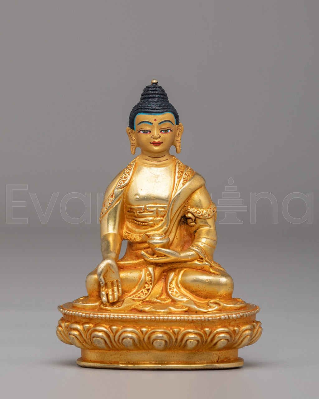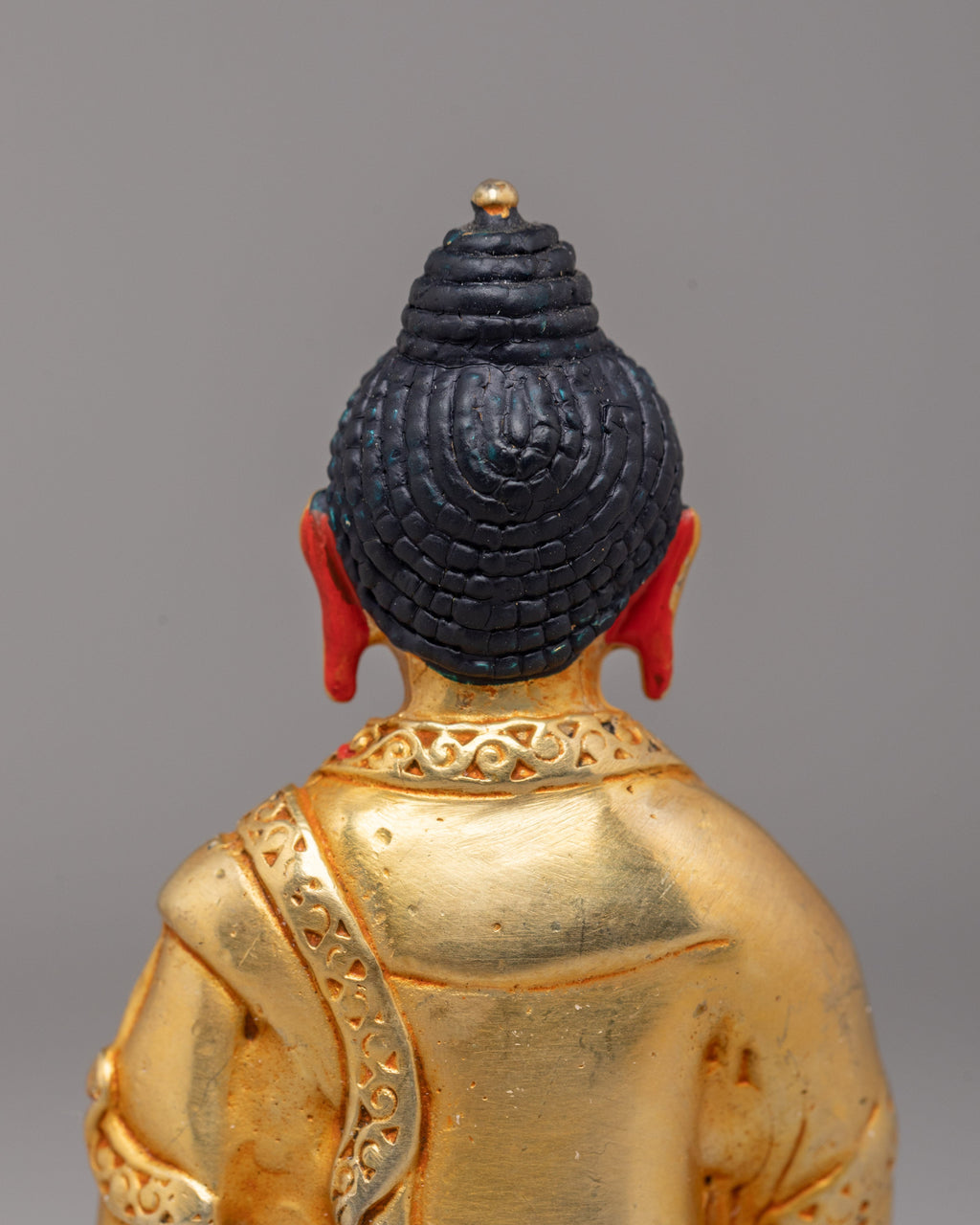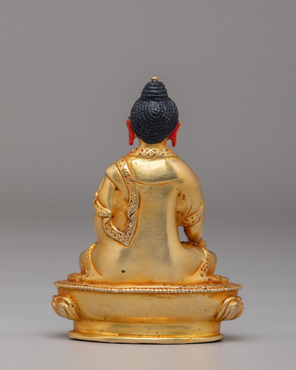 The iconography includes a lotus base that represents purity and spiritual growth, and the posture shows generosity and equality. The lotus base also symbolizes rising above challenges. The craftsmanship highlights sacred symbols found in Tibetan Buddhist art. Each detail is made to honor Ratnasambhava Buddha’s teachings and to bring a calm, devotional feeling to your space.