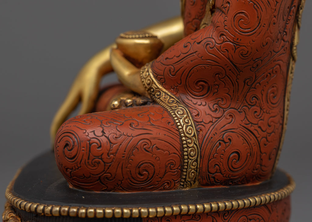 Shakyamuni Buddha, also called Siddhartha Gautama, is the historical founder of Buddhism and a symbol of enlightenment achieved through inner awakening. Born into royal privilege, he gave up worldly life to seek truth and freedom from suffering. After years of deep meditation and spiritual practice, he attained enlightenment beneath the Bodhi tree, becoming the "Awakened One." This statue reflects that profound moment of inner calm and limitless compassion. Depicted in a meditative pose with hands forming the Bhumisparsha mudra—symbolizing the Earth witnessing his enlightenment—the Buddha is shown with serene, balanced features embodying wisdom. His downcast eyes represent reflection, while the ushnisha (topknot) and urna (forehead mark) highlight his elevated spiritual state. Placing this statue in a sacred setting serves as a reminder of the Buddha’s teachings, encouraging mindfulness, compassion, and the pursuit of inner liberation. Ideal for meditation, personal devotion, or display, this Shakyamuni Buddha statue conveys a lasting message of peace and awakening for all.
