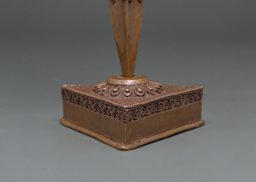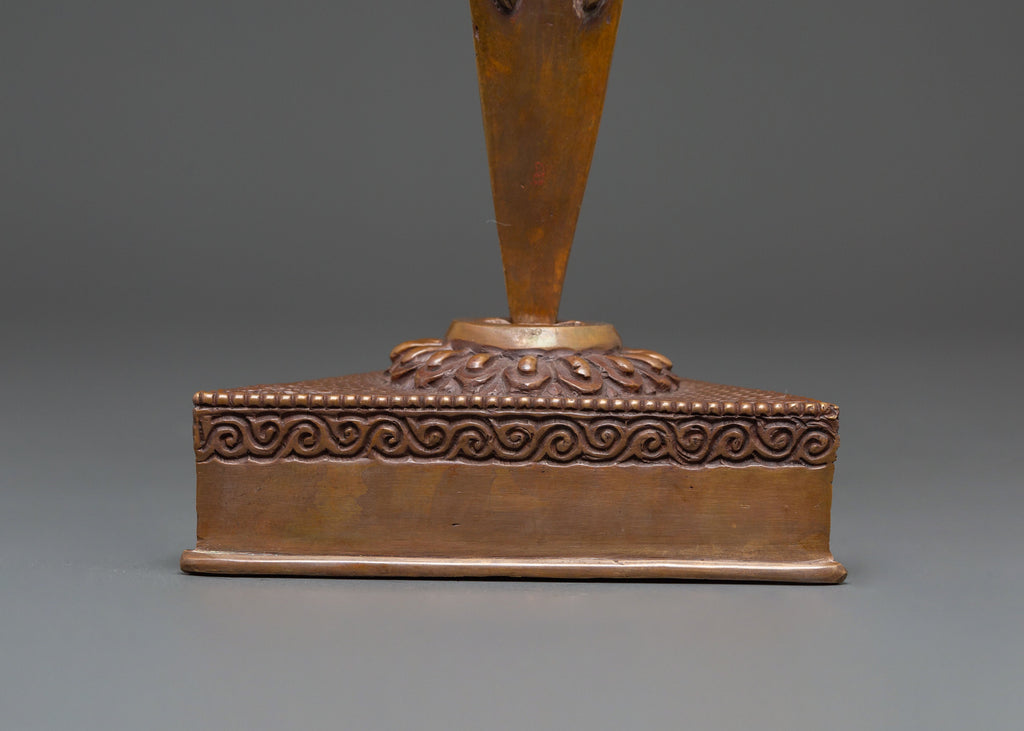 This handcrafted phurba sculpture serves as both a stunning piece of Tibetan religious art and a meaningful symbol of spiritual protection in Buddhist tradition. Practitioners of Vajrayana Buddhism will appreciate this ritual dagger as a meditation aid and altar centerpiece, while collectors of Tibetan sacred art will value its traditional craftsmanship and spiritual significance. The substantial oxidized copper construction makes this ceremonial phurba a treasured addition to any sacred space, whether displayed in meditation rooms, prayer areas, or as inspirational decor. Perfect for Buddhist practitioners, collectors of Himalayan art, or anyone drawn to meaningful spiritual symbols, this Spiritual Tibetan Phurba Ritual Dagger connects you to centuries of Buddhist wisdom while serving as a daily reminder of the path to enlightenment and spiritual purification.