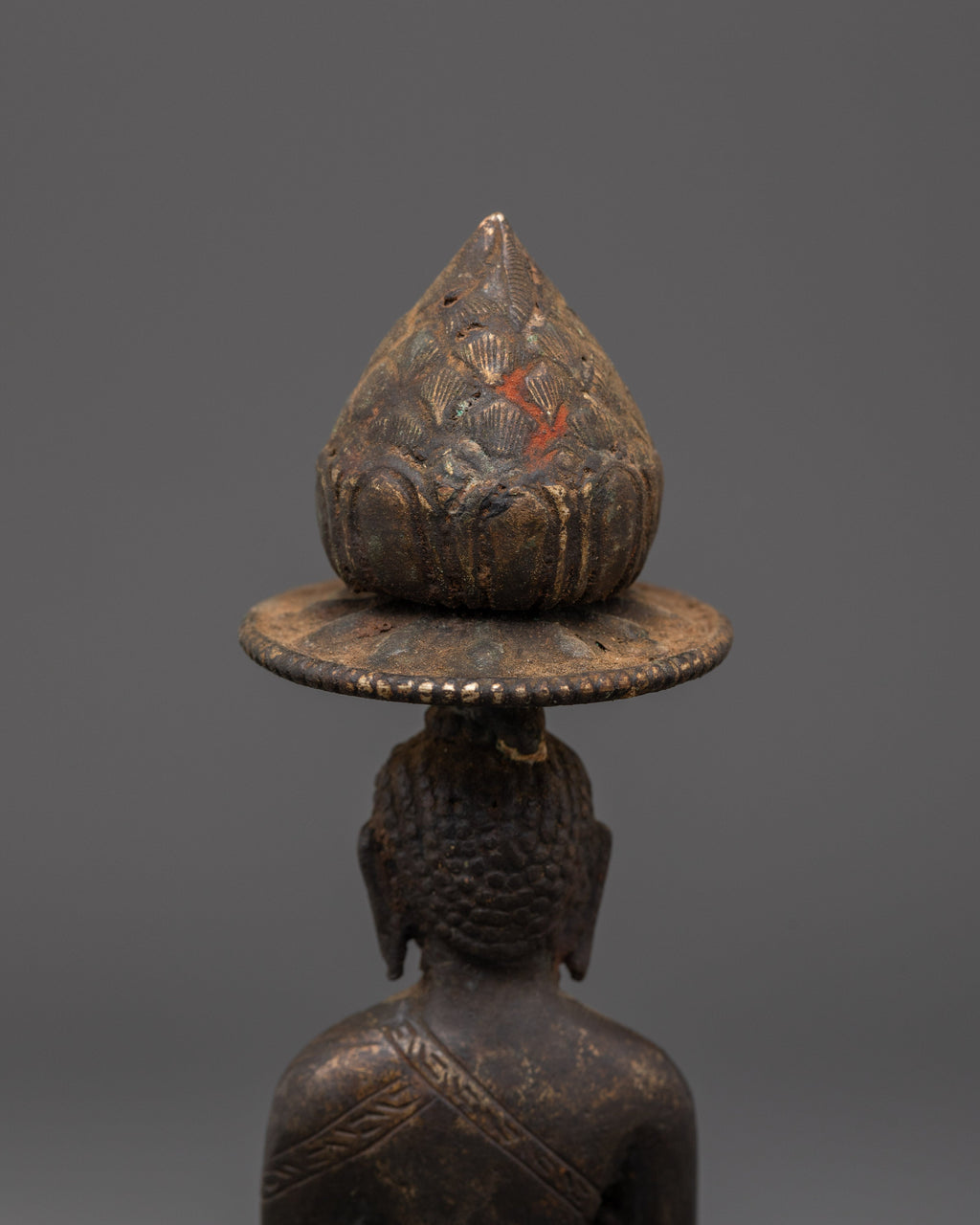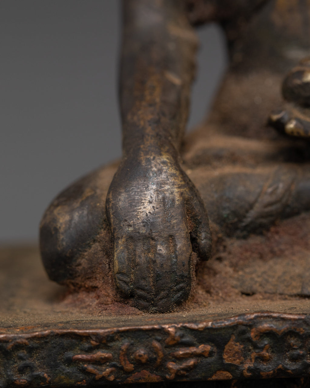 The oxidized copper gives the statue an elegant appearance, enhancing its spiritual presence. Whether you place it in your home as a reminder of the Buddha's teachings or offer it as a meaningful gift, this handcrafted piece embodies the wisdom and peace associated with Buddhist practice.