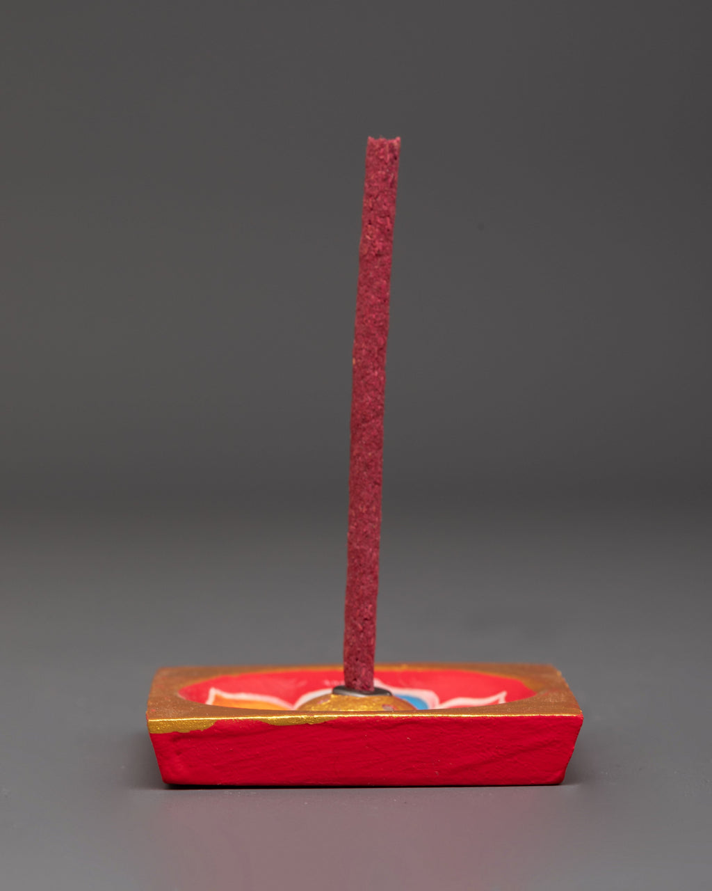 Handmade Tibetan Wooden Incense Holder | Hand-Painted with Traditional Spiritual Motifs