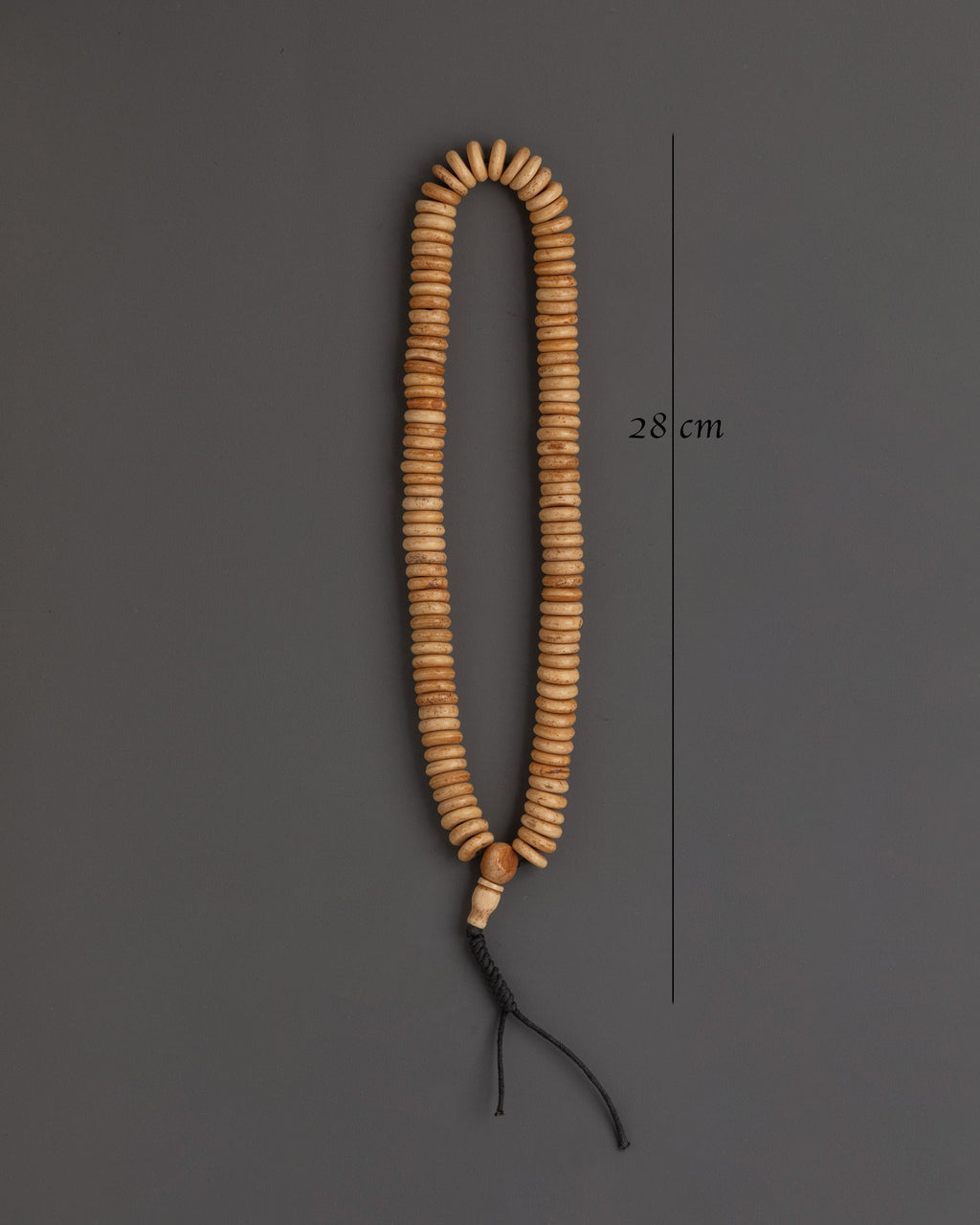 This Handmade Traditional Mala is a finely crafted accessory perfect for meditation and prayer. Measuring 28 cm in length, it is made from ethically sourced buffalo bone, ensuring responsible sourcing. Weighing just 0.013 kg, its lightweight design offers comfort during extended use, making it ideal for personal reflection or as a thoughtful gift. Combining sustainability with skilled craftsmanship, this mala honors the rich spiritual traditions passed down through generations.