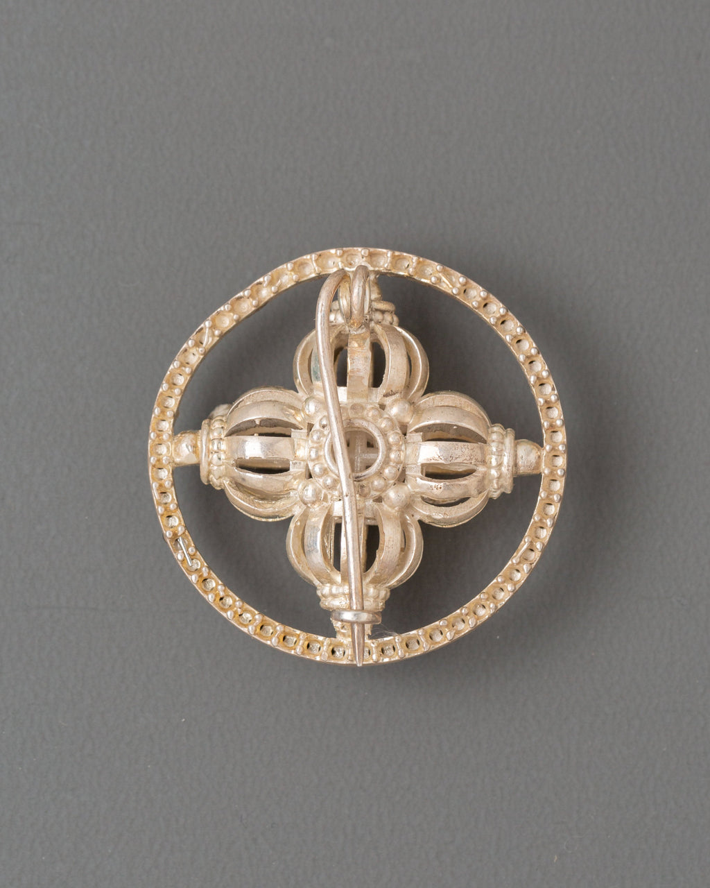 Every element of this Buddhist brooch carries deep spiritual meaning. The four vajra arms extending from the center point symbolize the spreading of divine energy in all directions, guarding against negative influences and grounding one’s spiritual practice. Its fine silver craftsmanship captures the elegance of ancient Tibetan artistry, making it both a statement of spiritual devotion and refined taste.
