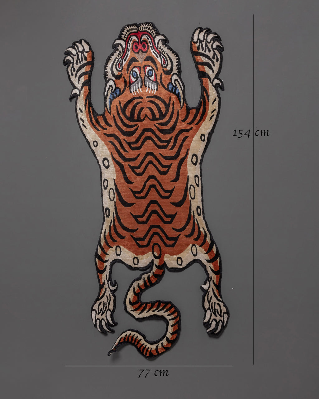 The Handwoven Tiger Design Rug for Home Décor adds a touch of luxury and natural beauty to your home. This rug measures 154cm in height and 77cm in width, making it the ideal size for making a big statement in any room. It's a beautiful tiger pattern reflects the sense of strength and beauty, combining elegance and charm. The viscose material makes the rug not only visually appealing but also soft, making it an excellent complement to any modern or traditional house.