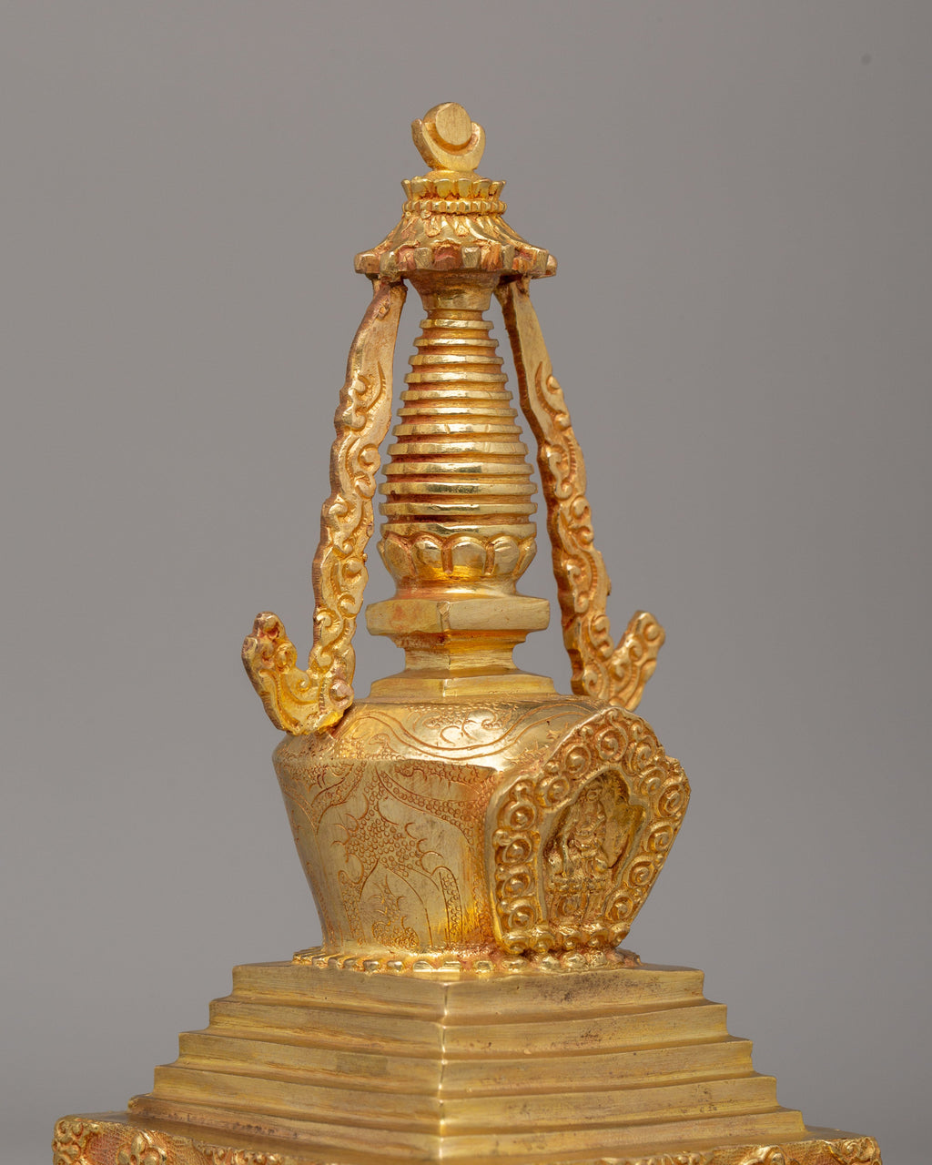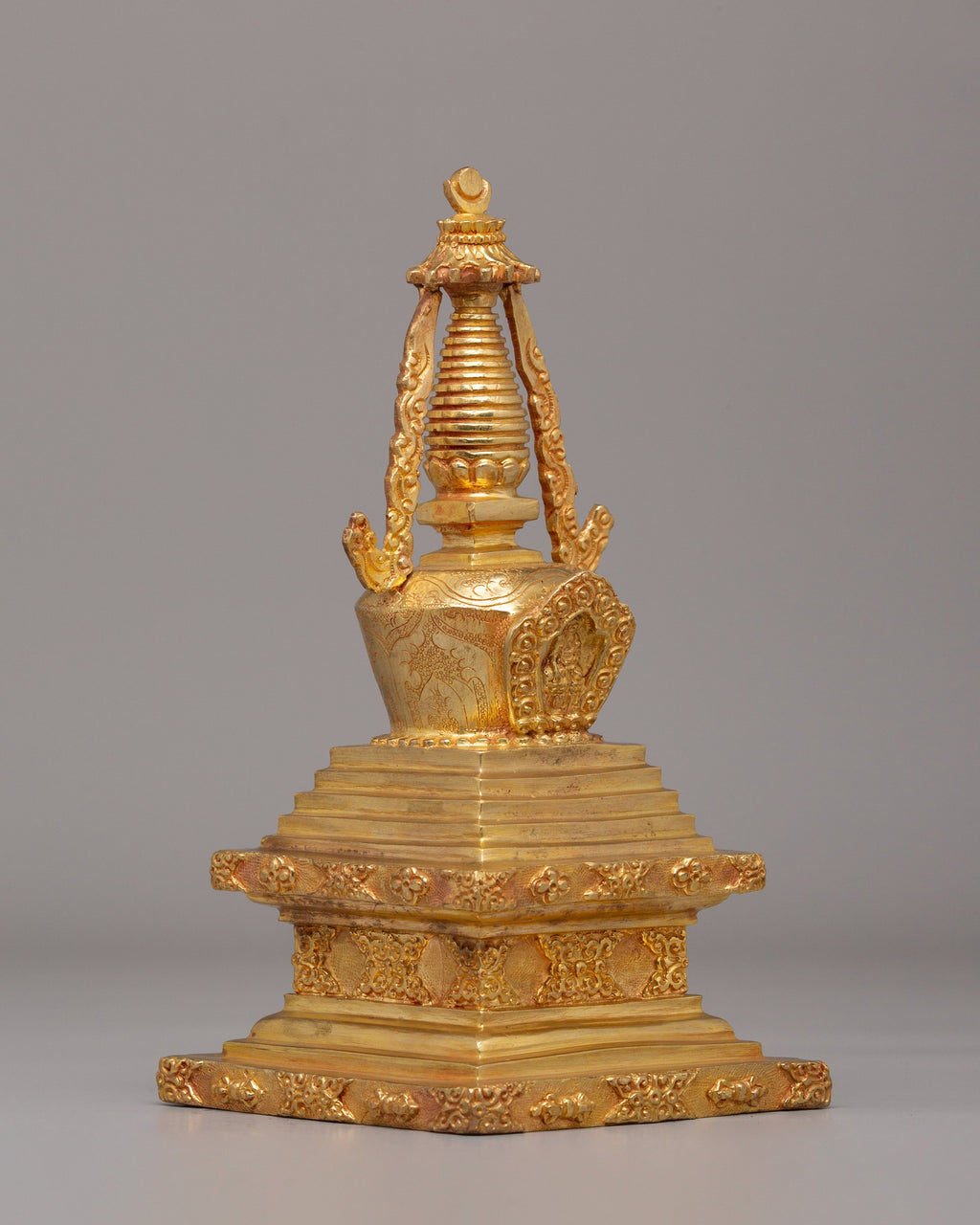 Copper Stupa for Meditation | Gold-Plated Meditation Stupa for Home Altar
