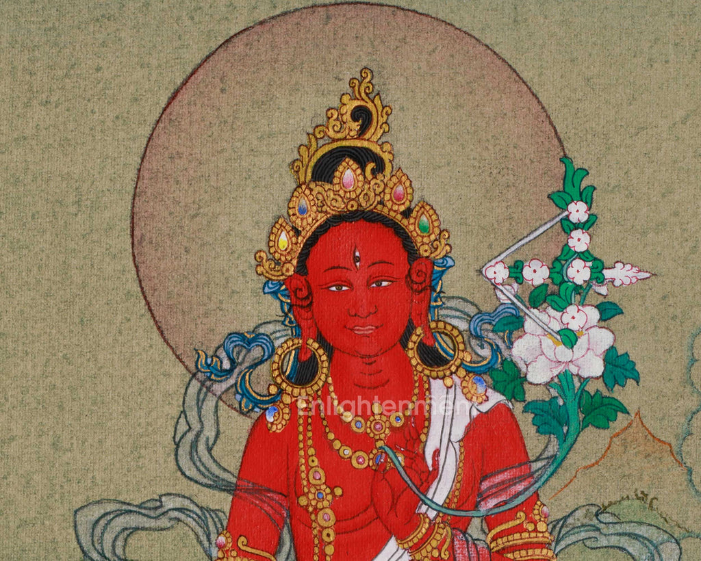 Hand-Painted Himalayan Red Tara Thangka | Home Decor | Spiritual Art