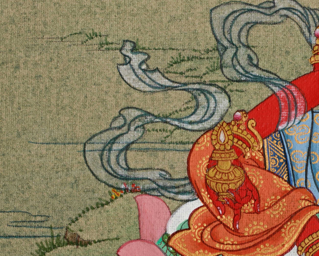 The Himalayan Red Tara Thangka and immerse yourself in divine action and compassion. This stunning artwork is meticulously hand-painted on premium cotton canvas, using shimmering 24K gold and natural stone tones. Each brushstroke is brought to life with the traditional Karma Gadri technique, reflecting Tara's strength and grace. The use of high-quality materials fosters a spiritual connection with Tara's enlightened energy, ensuring this thangka remains an enduring masterpiece.