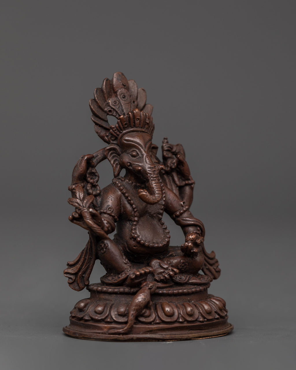 This Oxidized Copper Hindu lord Ganesha Statue is a handcrafted small idol that captures the grace and might of Lord Ganesha, the remover of barriers and bringer of knowledge. This little sculpture, measuring 6.5 cm in height by 4.5 cm in breadth and weighing only 0.062 kg, is excellent for personal altars, home temples, or sacred workshops. The oxidized finish emphasizes its sacred appeal, giving it a spiritual presence that combines traditional beauty.
